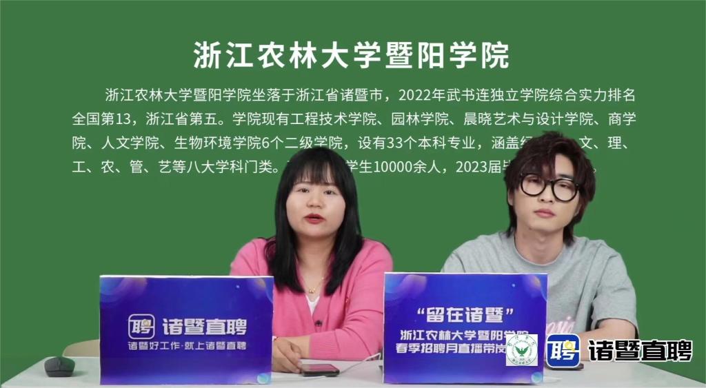 4月27日,举行线上直播带岗活动,学院辅导员戚愉彩化身为网络“主播”介绍学院的专业设置、整体毕业生情况、诸暨市人才补贴等信息,帮助毕业生更好地了解自身的的专业优势和就业前景。2023届毕业生张晋博以自媒体运营的第一人称亲历视角,在直播间与大家分享了自己在求职就业心得体会,帮助毕业生积极拓宽就业渠道。