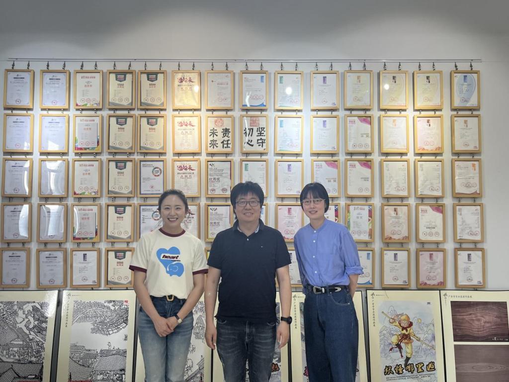 汪永奇对徐烨、张晨的来访表示欢迎,介绍了人文学院广告学专业发展、师资队伍建设等基本情况;同时重点介绍了基于广告学专业“双核四创多翼”人才培养的探索与实践,分享了以创意工作室为组建单元,“双核四创多翼”课程群的协同教学模式;对近年来人文学院师生创新、创意、创作、创业的“四创”成果进行了展示和分析,同时也对以《广告设计》《广告策划》课程为“双核”带动其它“多翼”课程群的教学模式进行了介绍。