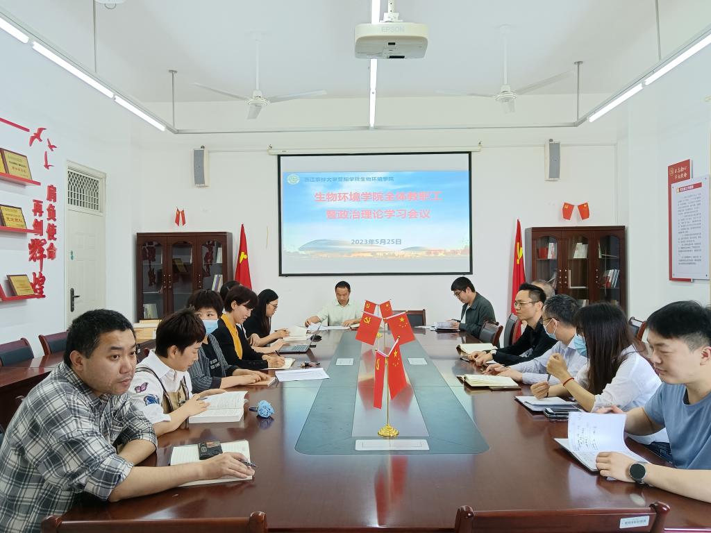 5月25日下午,生物环境学院在理工3502召开全体教职工会议暨政治理论学习会议。生物环境学院院长严国兵出席会议,会议由党总支副书记(主持工作)马忠兴主持,全体教职工参会。