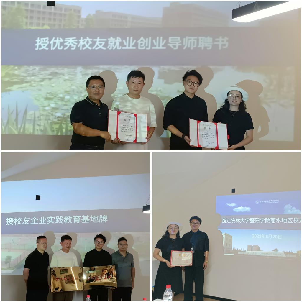 座谈会上,晨晓艺术与设计学院常务副院长王丽被聘为ER.空间设计公司“顾问”,校友企业ER.空间设计公司和丽水古堰画乡食品有限公司被授予“必赢766net手机版实践教育基地”,校友杨君、吕勇俊被聘为“大学生就业创业导师”。