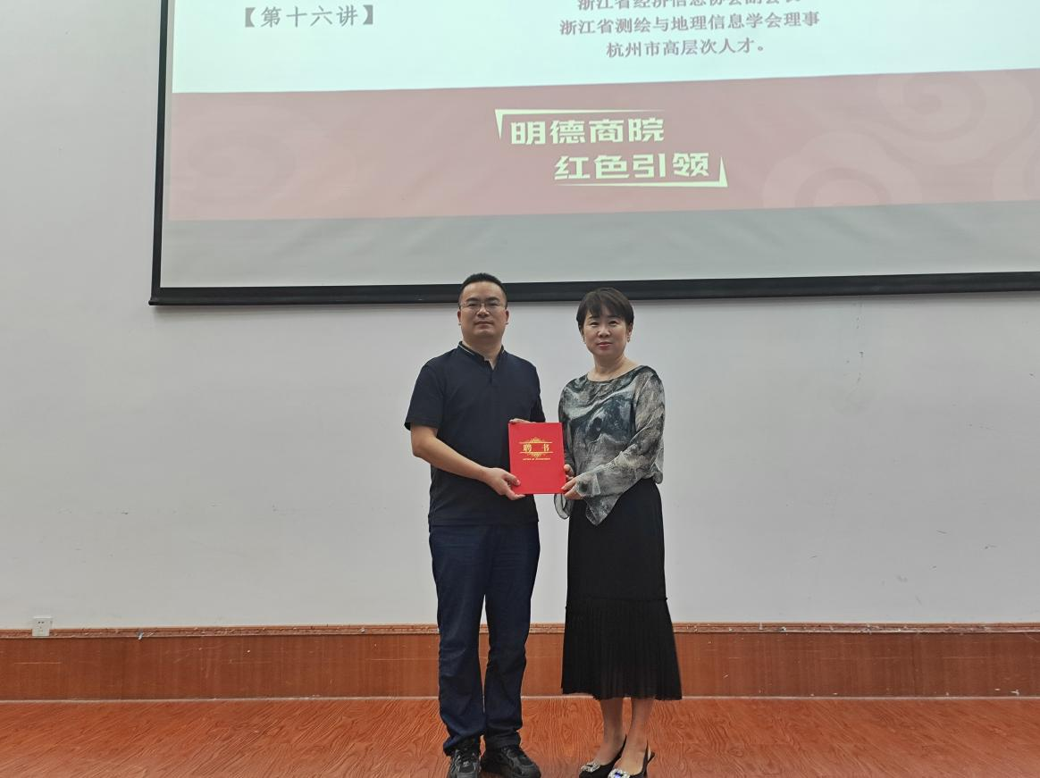 为进一步凝聚广大校友的智慧力量,9月26日下午,商学院在图书馆报告厅举办了明德讲堂(第十六讲)《校友论坛:脚踏实地练本领,学会学习创未来》。此次讲座由学院2005届毕业生、杭州校友会会长、浙江远卓科技有限公司董事长朱儒颂主讲。学院党委副书记李文莉聆听了讲座,讲座由商学院党总支书记张佩成主持。