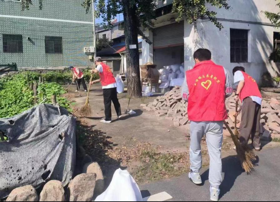 在洋塘村,同学们手持扫帚、簸箕等清扫工具,对道路、房屋周围等区域进行仔细清理。有的清扫路面,有的拾捡垃圾,有的来回清运垃圾。大家分工明确、团结协作、配合默契,认真、细致地打扫着乡村的每个角落,确保卫生不留死角,发扬了不怕脏、不怕累的精神。