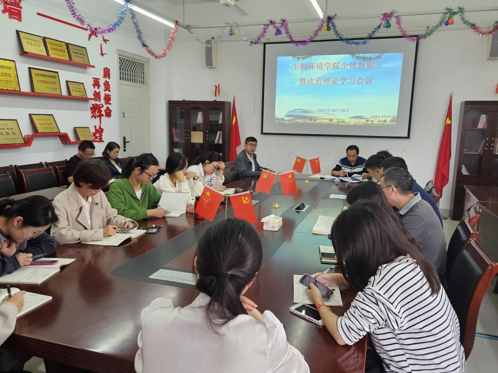 10月19日,生物环境学院在党员之家召开全体教职工会议,生物环境学院院长严国兵出席,全体教职工参加,会议由党总支副书记(主持工作)马忠兴主持。