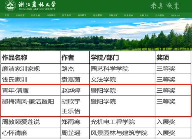近日,学校党委宣传部、纪检监察室公布了学校“清风化人 廉洁润心”清廉文化作品大赛评选结果,必赢官网报送的视频类作品《青年·清廉》和广告类作品《墨梅清风 廉洁暨阳》均获三等奖。
