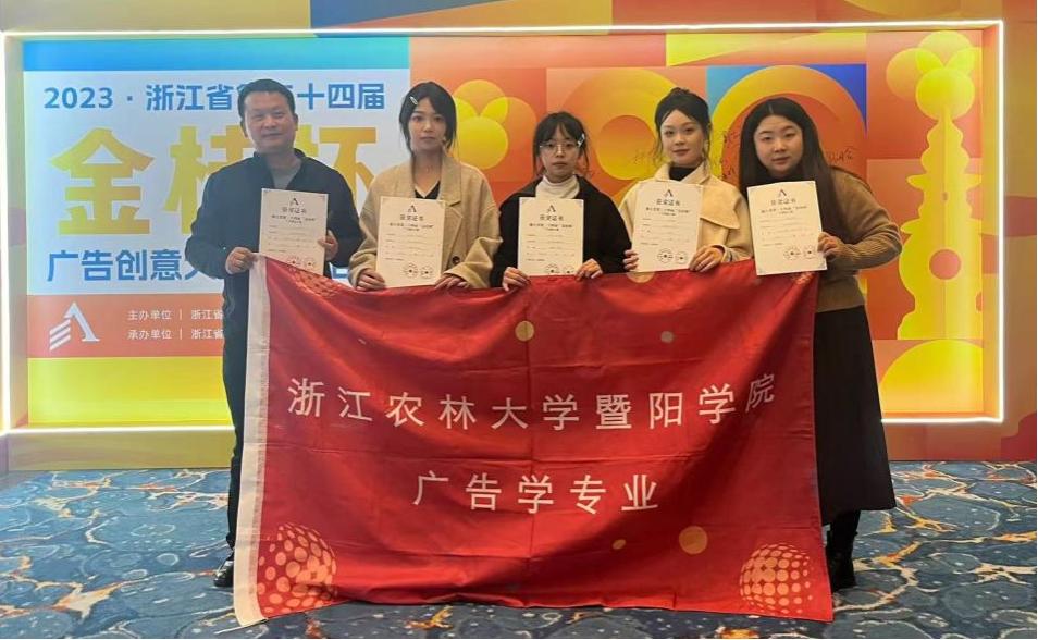 12月6日下午,浙江省第二十四届“金桂杯”广告创意大赛颁奖仪式在杭州隆重举行。诸暨市场监管局赵丰明科长和必赢766net手机版人文学院、马克思主义学院广告学专业师生共同参加了本次颁奖典礼,本届大赛中学院广告学专业学生参赛并获得银奖、铜奖、优秀奖各1项的成绩。