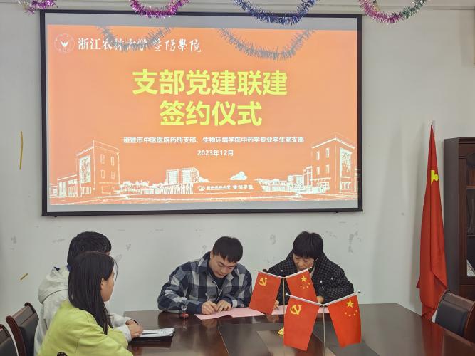 生物环境学院中药学专业学生党支部与诸暨市中医院药剂一支部举行党建联建签约仪式