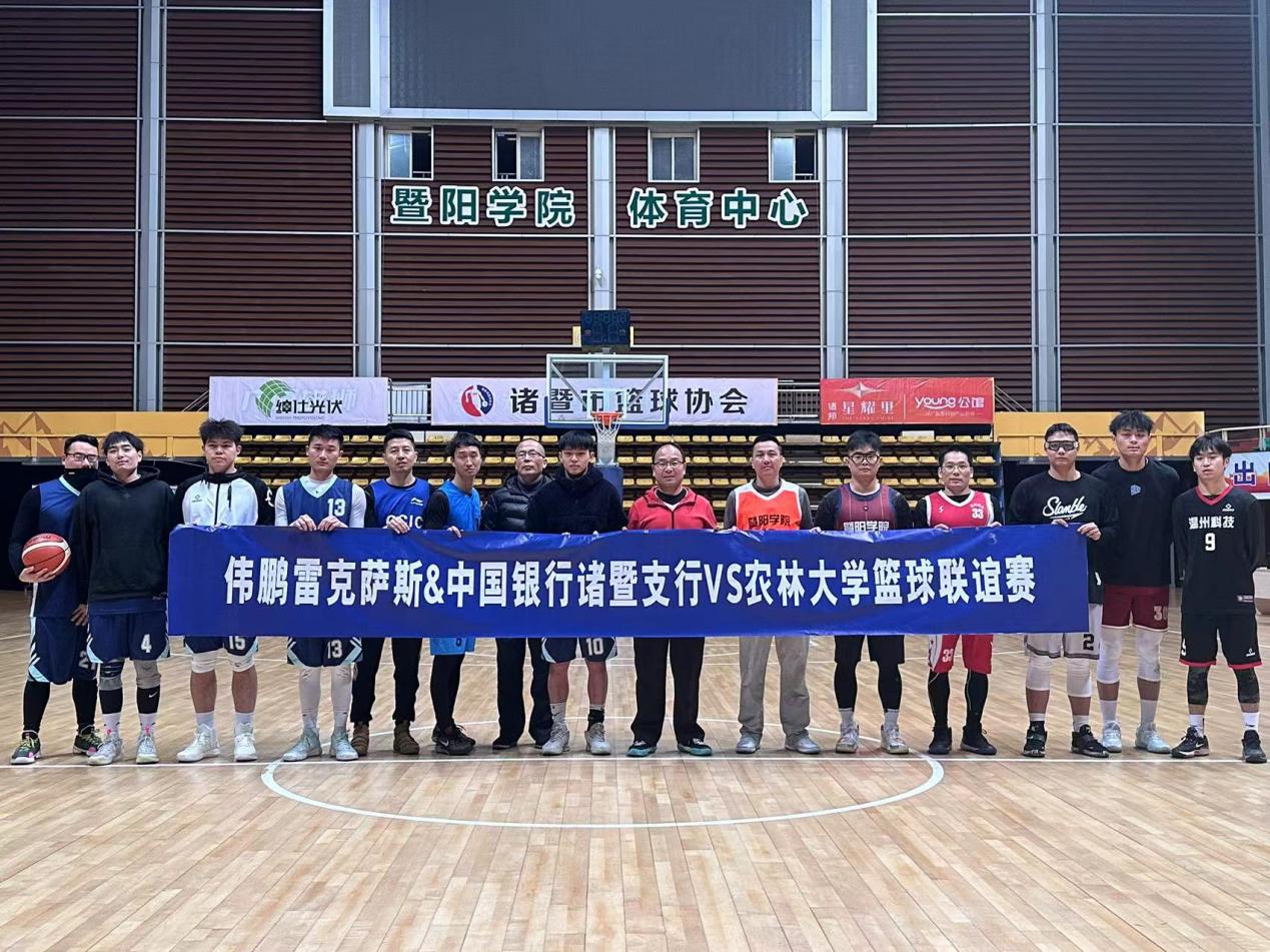 12月21日,商学院教职工篮球队与中国银行诸暨支行篮球队在学院篮球馆主馆开展了篮球交流友谊赛。