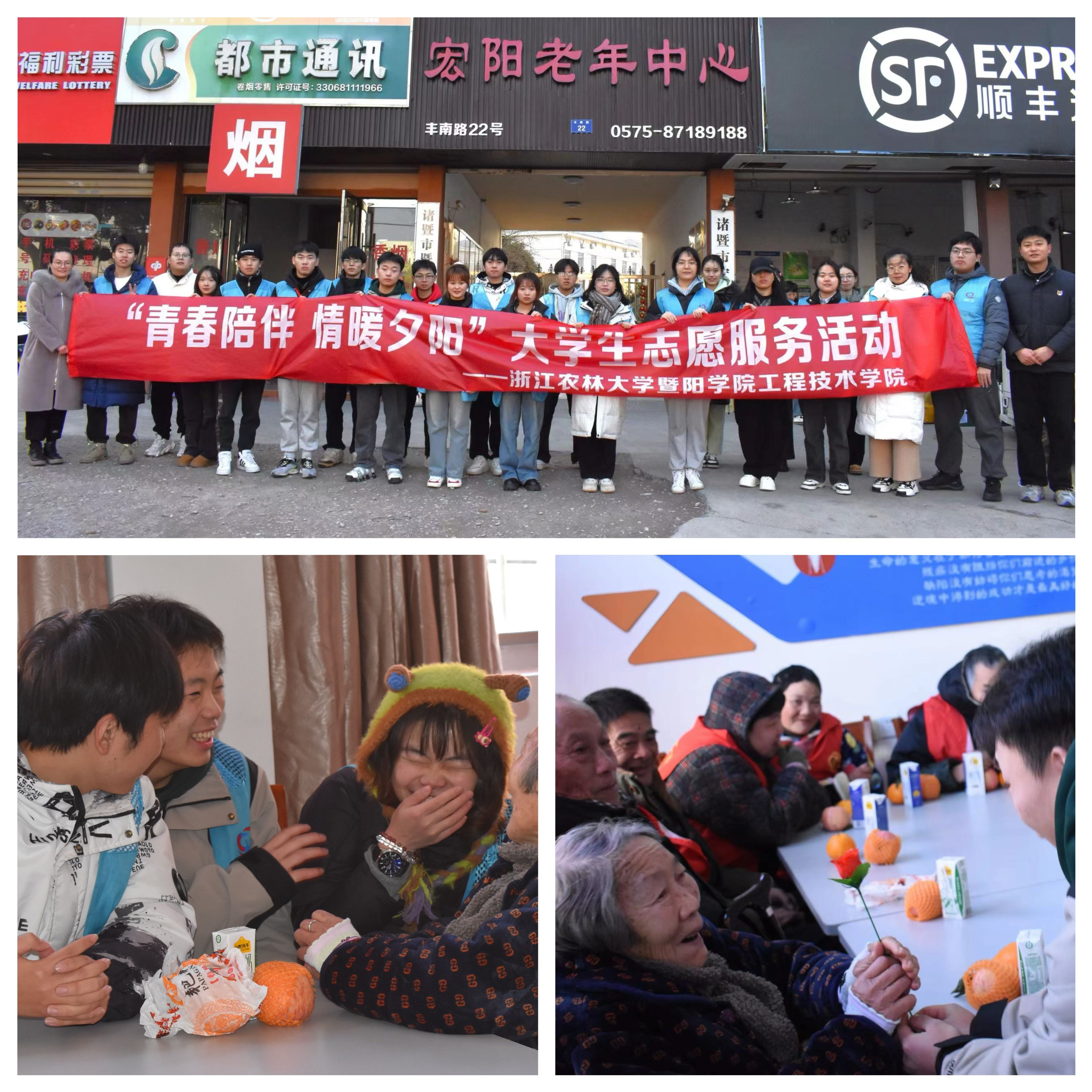 12月21日,举办“青春陪伴,情暖夕阳”志愿活动,为诸暨市宏阳老年中心的老人送上水果、牛奶等慰问品,叮嘱老人在寒冷的冬日里多补充营养,提高抵抗力。同学们通过唠唠家常、温情陪伴、倾心表演,传递青春正能量。