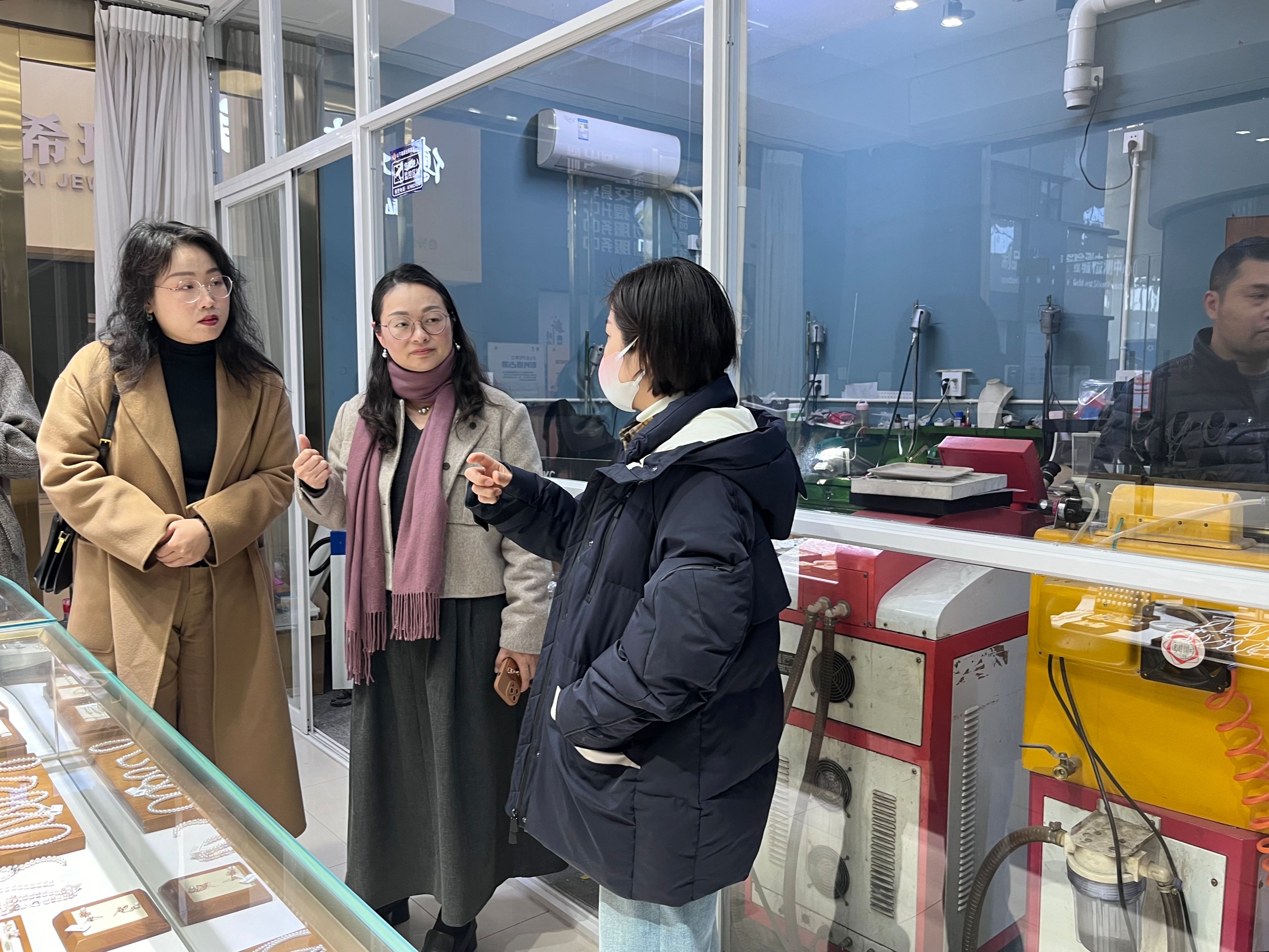 为进一步推进校企合作,提升艺术学院人才培养内涵建设,更好地满足社会对高质量应用型人才的需求,1月17日,晨晓艺术与设计学院院长王丽、中国珍珠学院副院长王静敏及相关教师一行前往华东国际珠宝城等当地代表性知名企业进行走访。