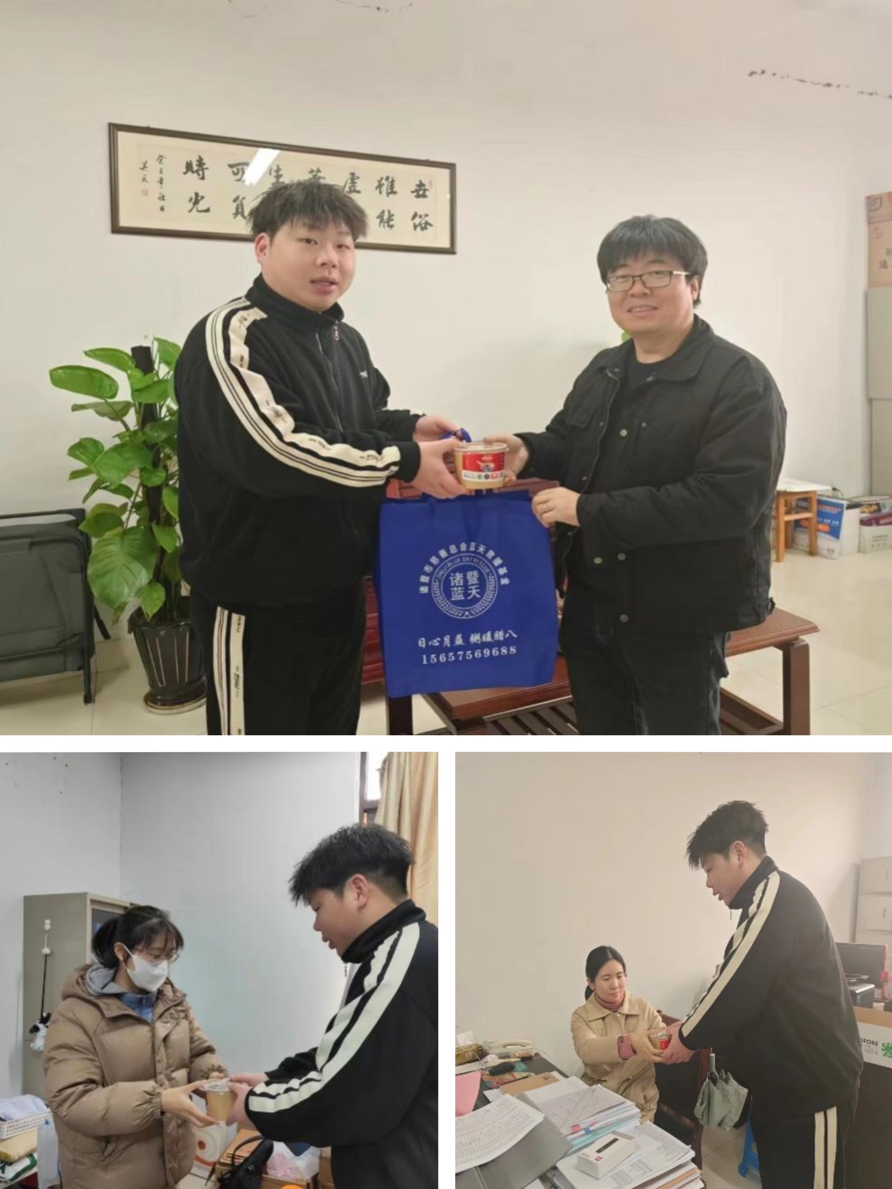 在学院的精心安排下,志愿者们早早地走访了学院保卫处与人文学院、马克思主义学院的教师办公室,为辛勤在岗的老师和工作人员们送上热腾腾的腊八粥。接过腊八粥,大家脸上洋溢着幸福的笑容,纷纷表示感谢。