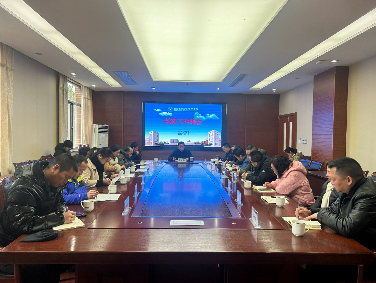 会上,科研管理部负责人从项目申报、平台建设、奖项申报、研究生导师新增遴选及招生资格审查、论文发表、项目及成果宣传、学科建设、年度任务分配等8个方面做工作安排说明,各二级学院、参会部门负责人就相关工作以及科研工作中遇到的问题进行交流商讨。