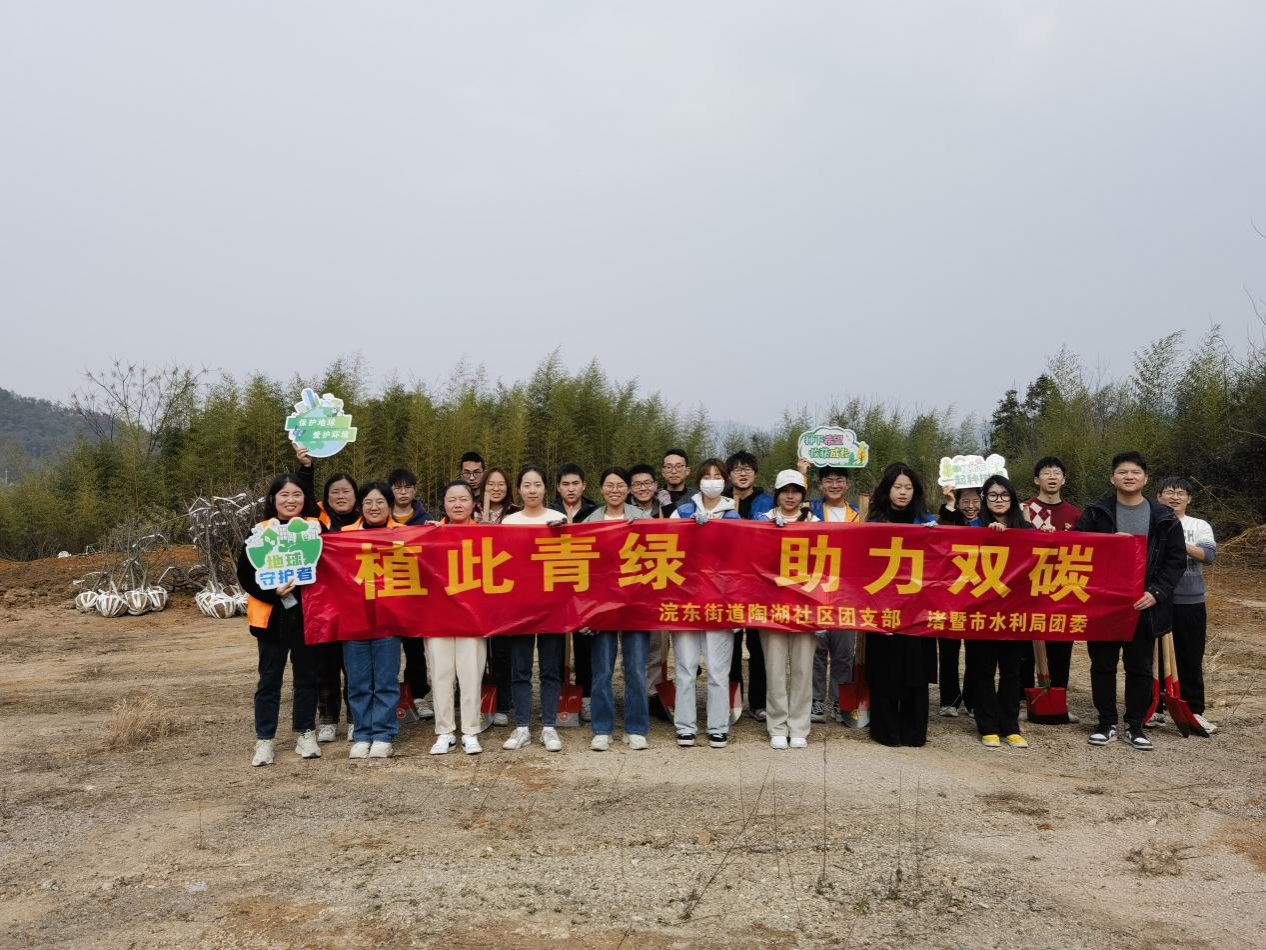 水是生命源,树是水卫士。为提升广大职工与学生保护环境、爱绿护绿的意识,3月12日,诸暨市水利局、陶湖社区团支部和必赢766net手机版商学院积极践行绿色环保生态理念,在永宁水库组织开展了“青春绿动志愿,校地团委共建”植树节活动,用实际行动为春光“添绿”,为城市“添彩”。