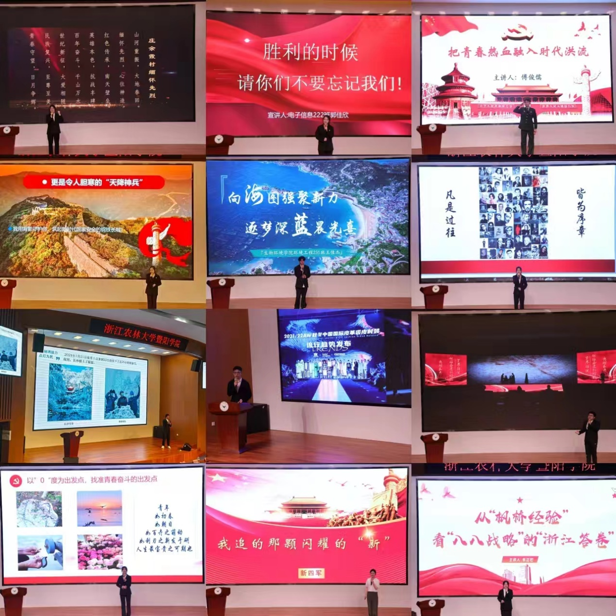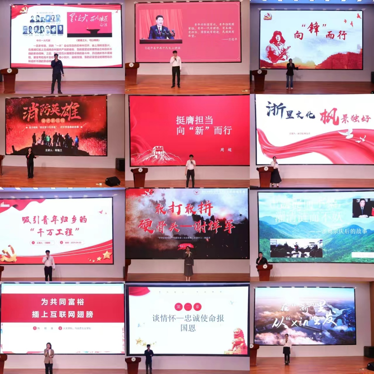 本次思政微课大赛以“勇当先行者,谱写新篇章”为主题,比赛下设红色教育类、发展成就类、青春奉献类三个类别。在复赛评审的基础上,共有12个教师组作品、12个学生组作品晋级决赛。决赛现场上,每位参赛选手通过“小切口”讲好“大故事”,用生动的语言和具体的事例,将党的奋斗历程和国家发展的壮丽画卷展现得淋漓尽致,充分展现了暨阳师生昂扬向上的精神风貌。