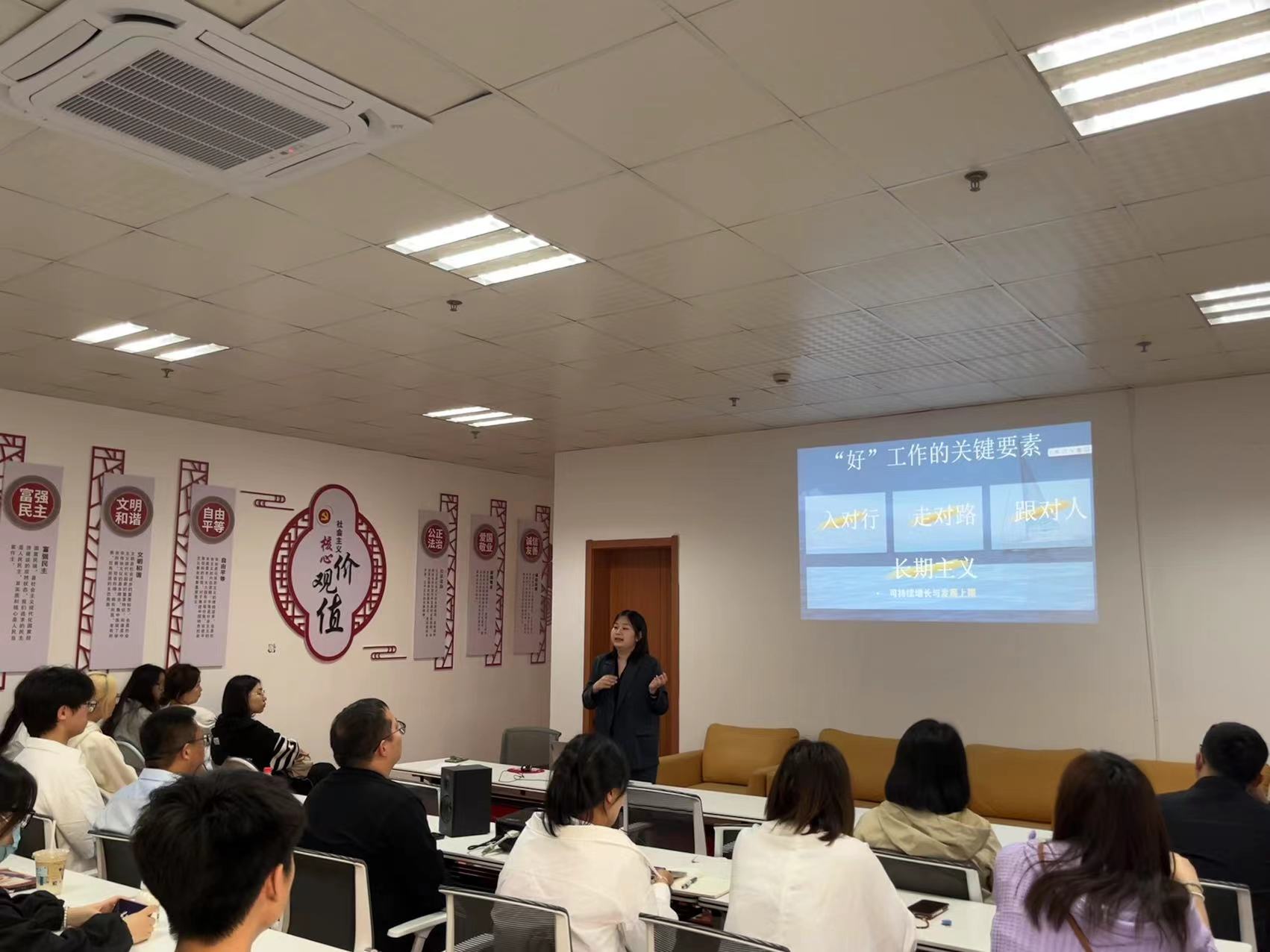 本次讲座邀请了海亮教育科技服务集团有限公司招聘主管、校园招聘招聘负责人陈亭妃主讲。她从新质力发展下的就业前景、行业发展、自我优势挖掘、职业能力培养等方面进行深入讲解,在场师生对职业生涯规划有了更加全面的认识。