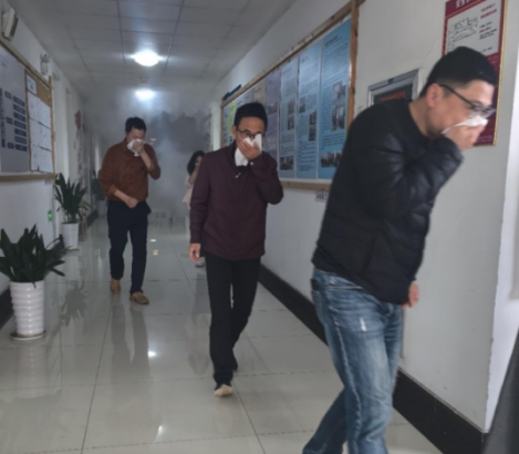 本次演练模拟了发生火灾,火势迅速蔓延,现场涌出大量浓烟的险情。模拟险情发生后,楼层疏散引导员迅速抵达指定位置,引导全体教职工用湿毛巾捂住口鼻,沿着疏散楼梯采用弯腰低姿的方式,按照规定路线安全疏散到学校操场。整个撤离过程沉着冷静、互相合作,以最快的速度完成了此次逃生演练任务。