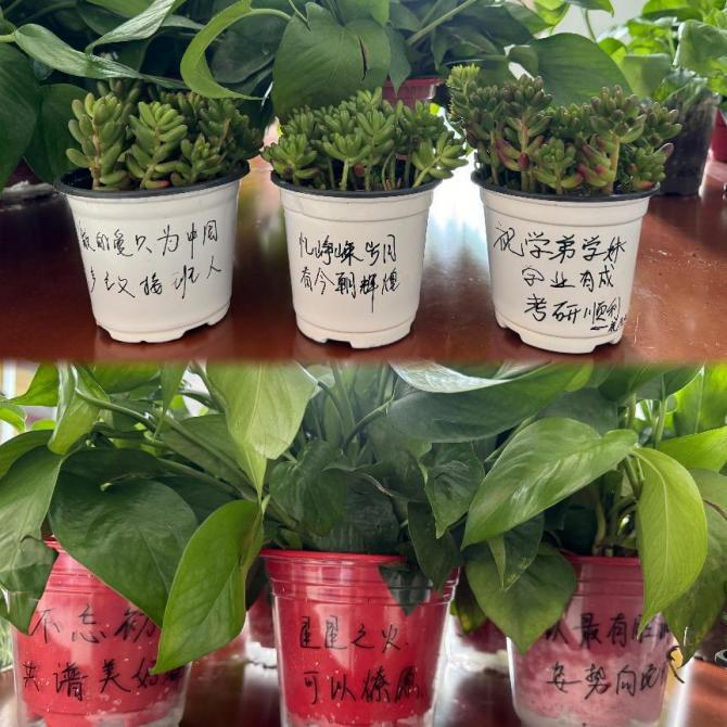 活动中,学生党员们怀揣着热情与信念将一株株植物种在盆栽里,写下美好寄语,将这份祝愿赠送给学弟学妹。与会党员与积极分子还就考编、考研、就业等作了交流学习。