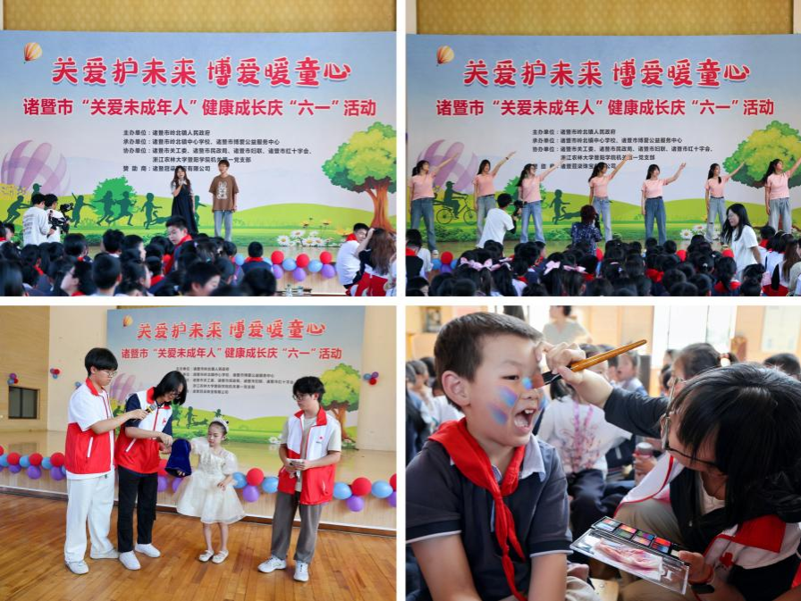 关爱未成年人健康成长,传递博爱精神,5月29日,学院机关第一党支部赴岭北镇中心学校参加诸暨市“关爱未成年人”健康成长庆“六一”活动。