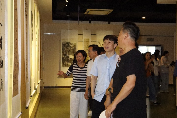濮承三介绍了古越书画院的基本情况并提出要传承和弘扬中华优秀传统文化,增强学生对中华优秀传统文化的自信,让更多的师生通过此次活动更深入了解该文化艺术。随后,濮承三、郑永向学院工会、图书馆、学工部团委、人文学院、马克思主义学院分别赠送《古越艺丛》系列刊物,真正促进了书画文化在校园“生根发芽”。赠书仪式后,各位领导嘉宾一同参观古越书画院书画展。