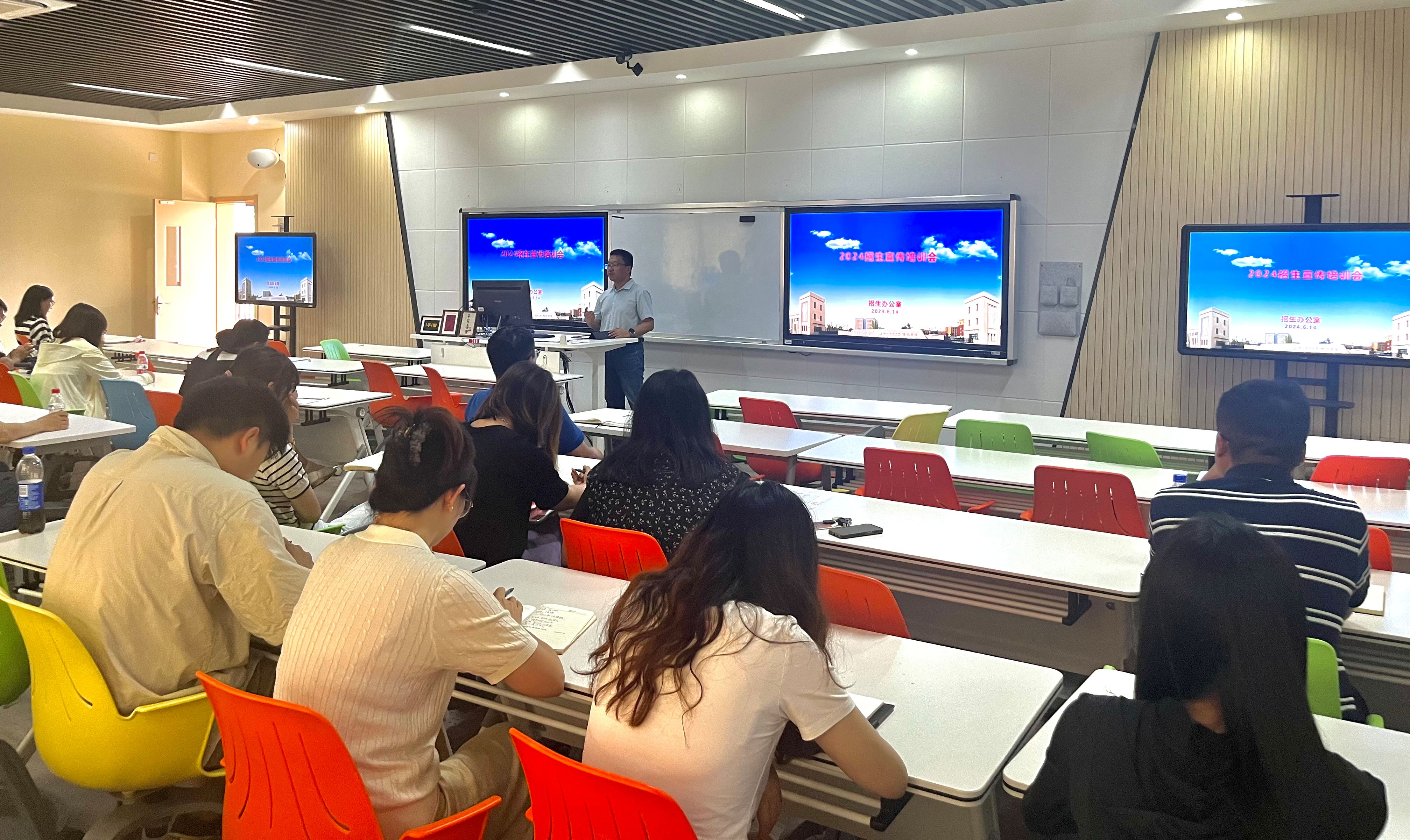 6月14日,学院招生办于理工1515教室召开2024年招生咨询培训会。学院党委副书记高国俊出席,相关部门负责人及各二级学院招生咨询师生志愿者参加本次会议。 会议由学工部负责人主持。