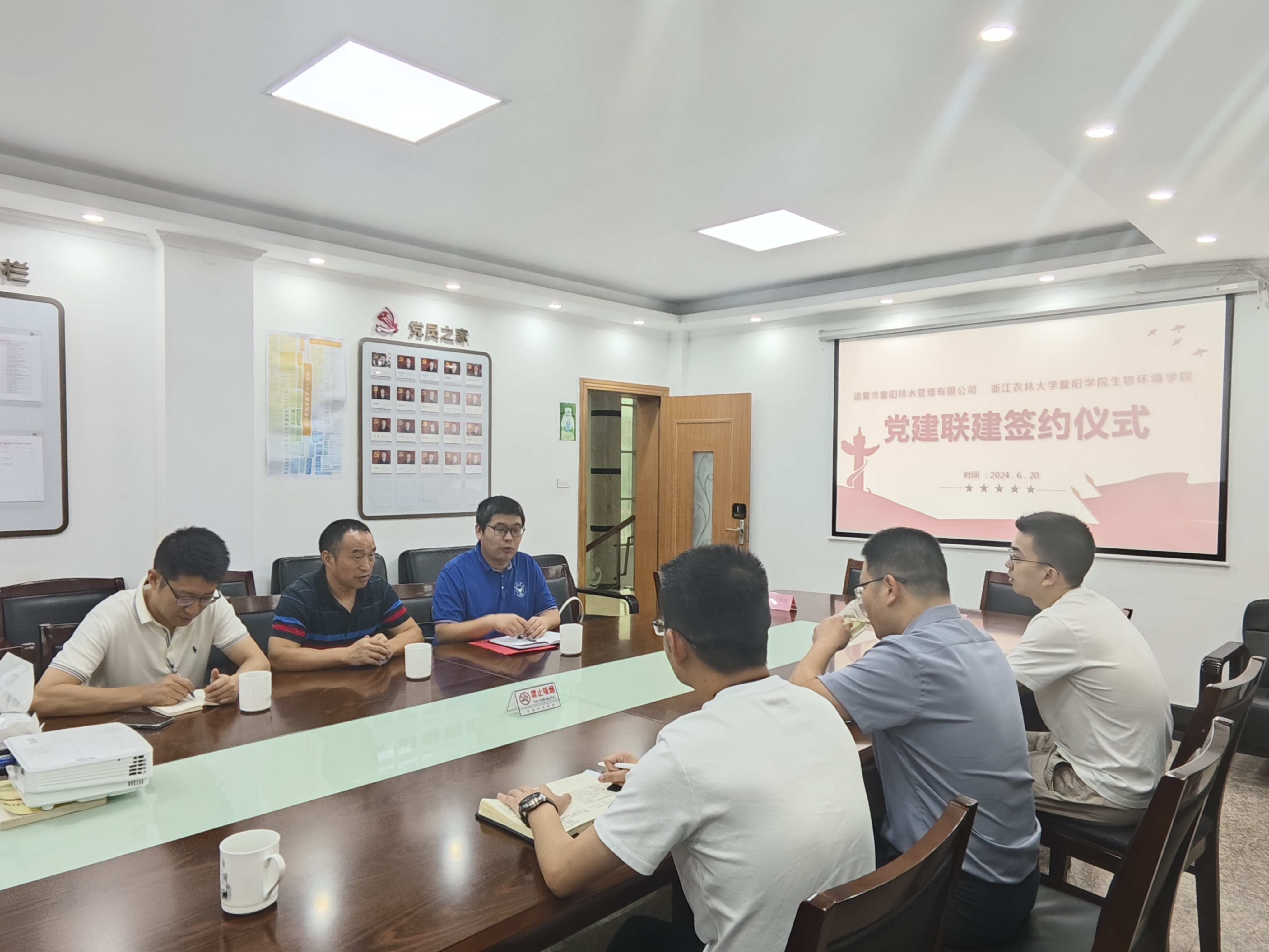 为深入学习贯彻习近平新时代中国特色社会主义思想和党的二十大精神,全面落实新时代党的建设总要求, 6月20日,生物环境学院和诸暨水务集团暨阳排水管理有限公司支部举行党建联建签约仪式。生物环境学院院长严国兵、党总支副书记(主持工作)马忠兴、暨阳排水管理有限公司党支部书记何天江、生物环境学院相关教师参加了本次仪式。