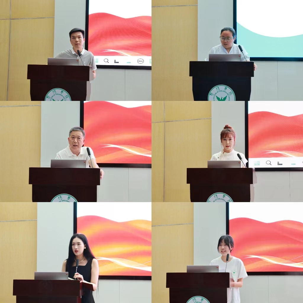 各二级学院党总支副书记为学院暑期社会实践重点立项团队代表授旗。社会实践教师代表与学生代表分别进行了发言。