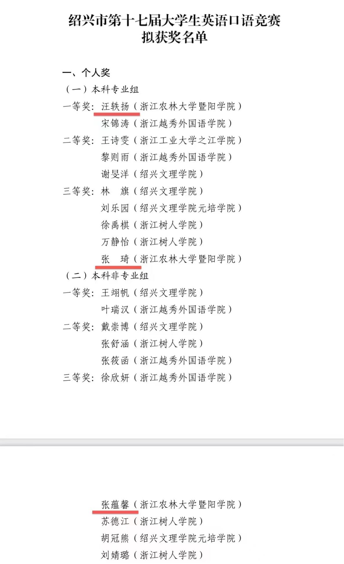 人文学子创绍兴市第十七届大学生英语口语竞赛历史最佳成绩