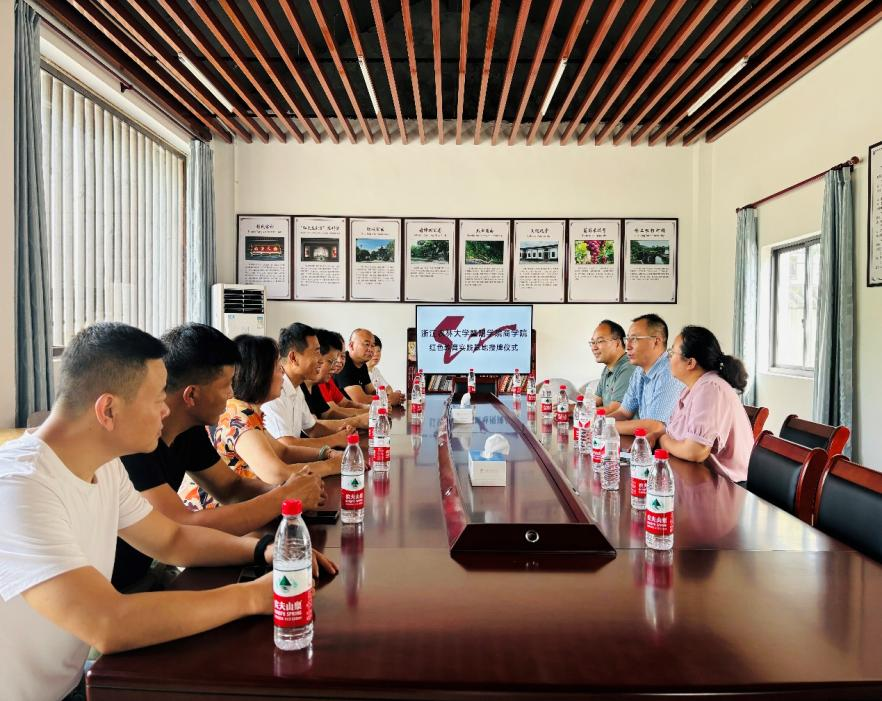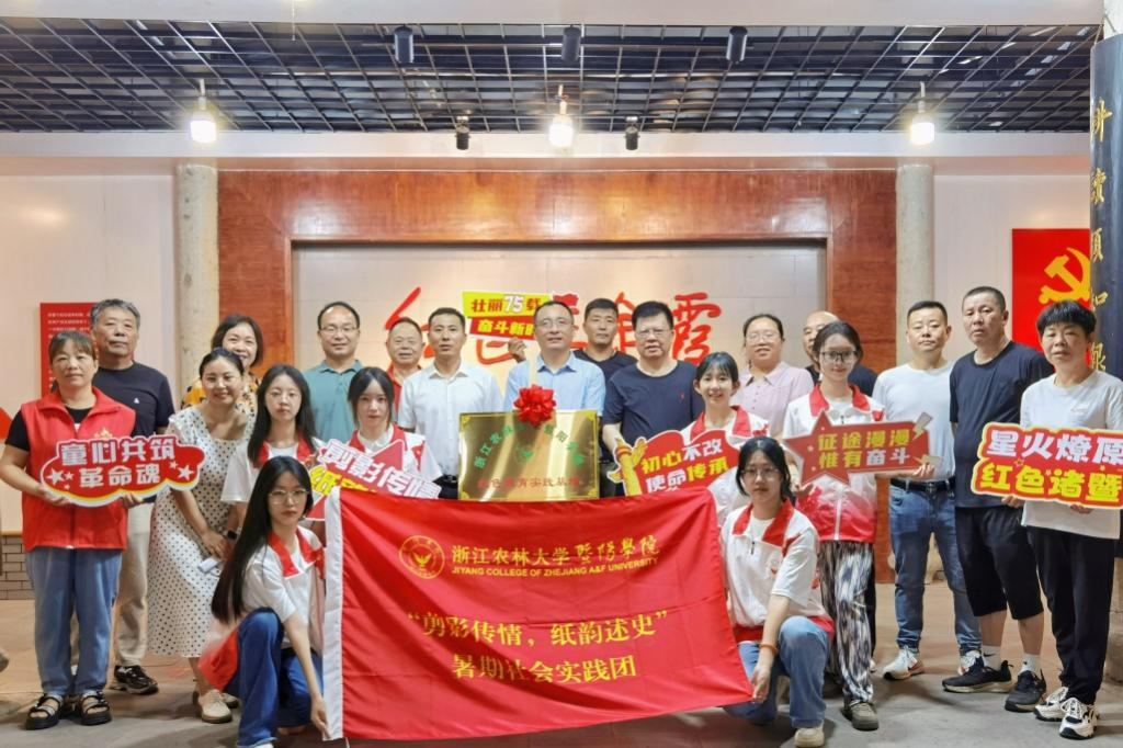 为深入学习贯彻习近平总书记关于弘扬革命文化、传承红色基因的重要思想,7月12日,学院党委委员、副院长朱向涛看望“剪影传情,纸韵述史”团队师生并出席实践基地授牌仪式。学院学工部、商学院相关负责人及指导老师,上余村党委书记杨海民,诸暨市新四军历史研究会、大唐街道上余村相关负责人参加授牌仪式。