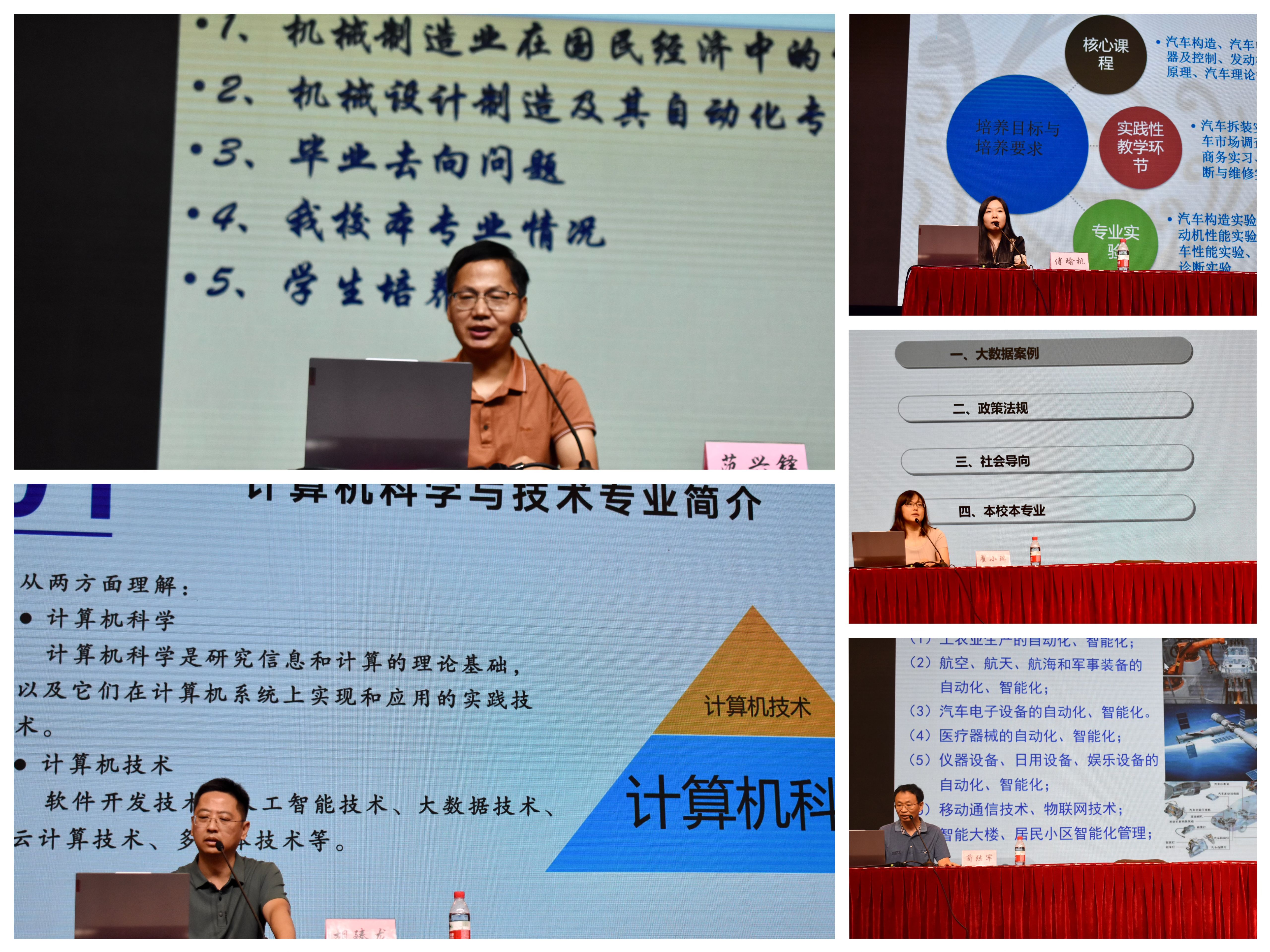 在专业教育大会上,机械设计制造及其自动化专业、汽车服务工程专业、计算机科学与技术专业、数据科学与大数据专业、电子信息工程专业团队负责人分别从专业概况、人才培养、课程实验、师资力量以及就业前景和展望等方面对专业做了详实的介绍。通过专业教育,不仅有效提升学生的专业认知能力和学习能力,明确了发展目标,同时激发了学生的学习热情,为新生学好专业奠定了思想基础。