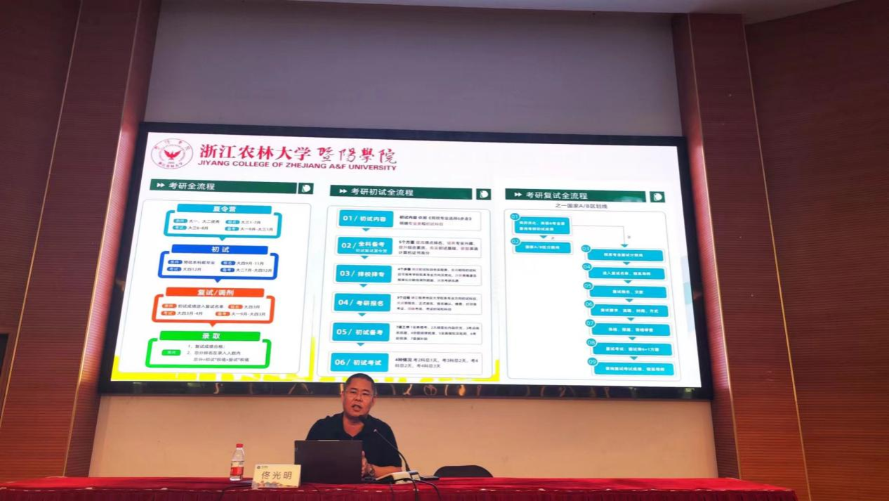 主讲人以如何实现高质量就业为切入点,分析了视觉传达设计、产品设计和数字媒体艺术三个专业的高质量就业方向和要求,围绕考公、考研、创业、就业几种形势做了简要介绍。他还提出了三点建议,一是要早做职业生涯规划,做好选择关;二是要努力学好大学英语,打好基础关;三是要保持奋斗的习惯,练好能力关。