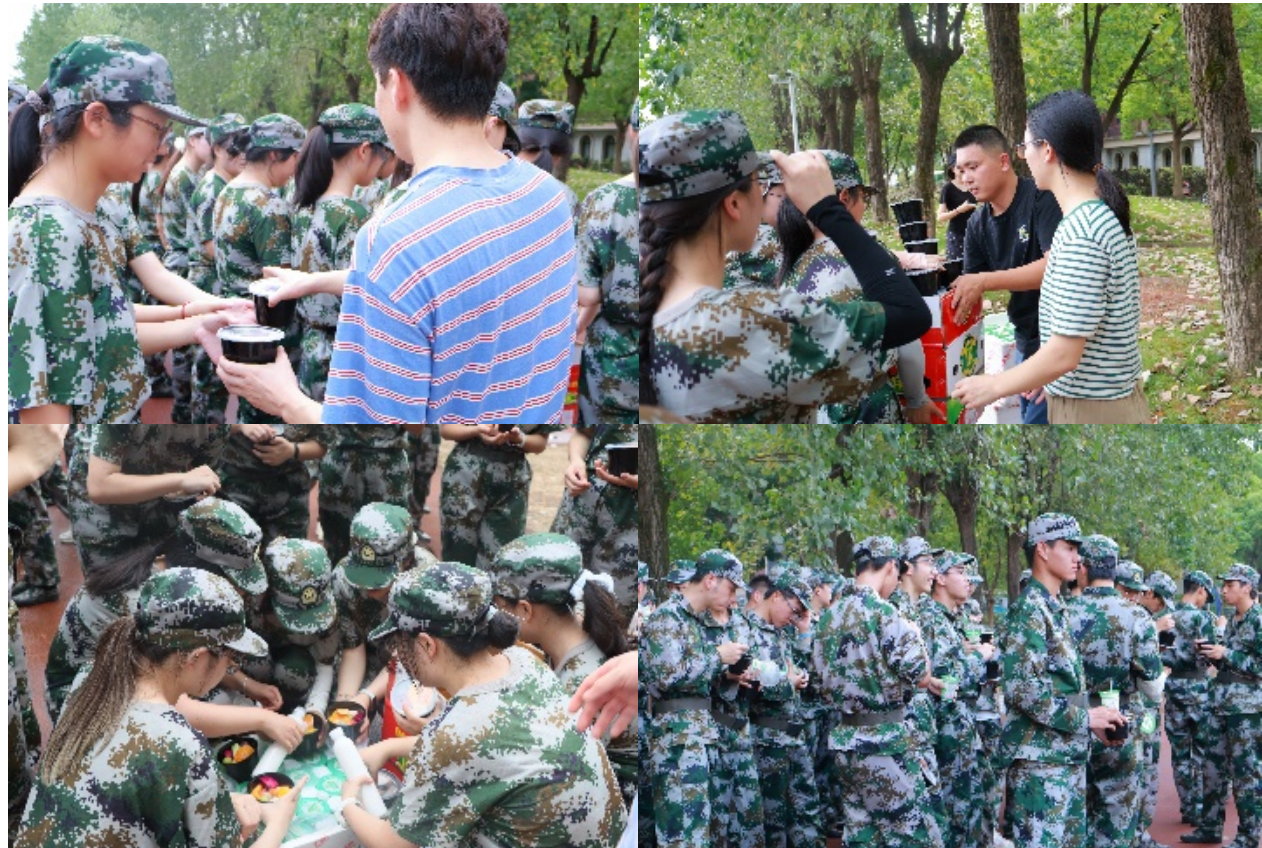 随后,人文学院、马克思主义学院班子成员们为新生和教官送上清甜可口的水果捞和冰凉解暑的绿豆汤,并致以节日关怀和问候。
