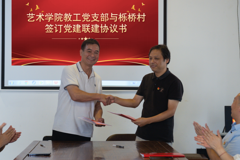 当天,艺术学院教工党支部与枫桥镇栎桥村党委举行了党建联建签约仪式,枫桥镇党委委员陈龙、栎桥村党委书记王永全等出席了活动。