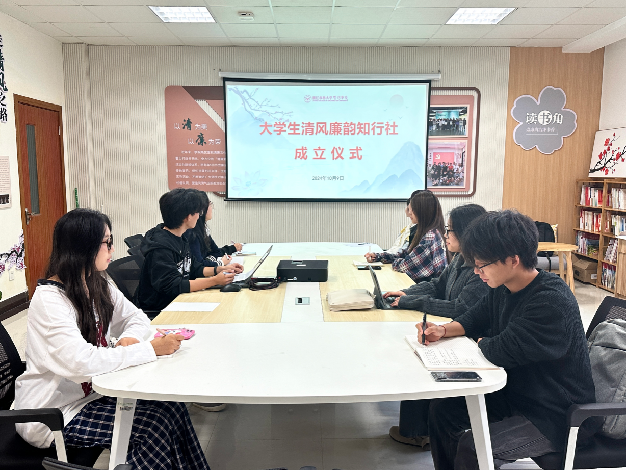 10月9日,学院首个大学生廉洁教育主题社团——大学生清风廉韵知行社成立。