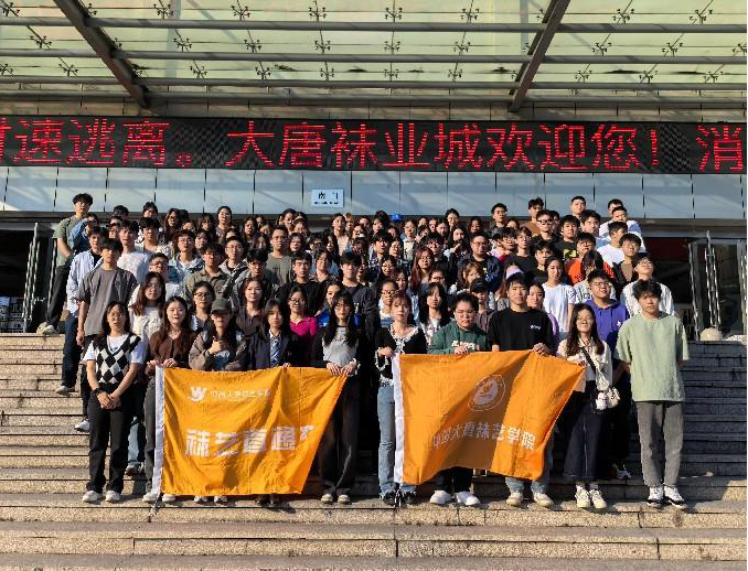 行程最后,调研团前往大唐袜业城实地考察袜业市场,全面掌握行业动态,通过了解不同产品的价位、风格特色、工艺差异、流行款式等内容,为产业班学员未来参加“时尚袜艺”相关大赛提供通识性认知。本次活动是为2024年产业班新学员安排的认识性实习教学活动,旨在让广大师生逐步接触袜艺产业,并能够对袜艺产业产生进一步具象的认识。