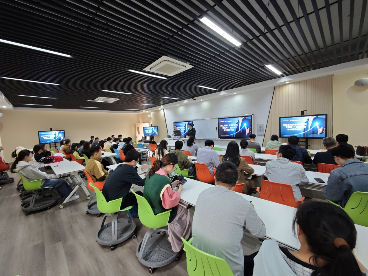 为全面推进学院“互联网+”创业大赛项目培育工作,进一步激发大学生创新创业热情,提升学院师生双创项目质量与竞争力,11月4日下午,创新创业学院举办了以“以创业思维做创业大赛”为主题的项目辅导专题讲座。本次讲座特邀浙江农林大学集贤学院(创业学院)资深专家王康担纲主讲,各二级学院重点培育项目团队指导教师及核心成员、有志于开展双创学科竞赛的师生、双创实践孵化团队师生共计60余人参会。讲座由创新创业学院专职副院长陈稼瑜主持。