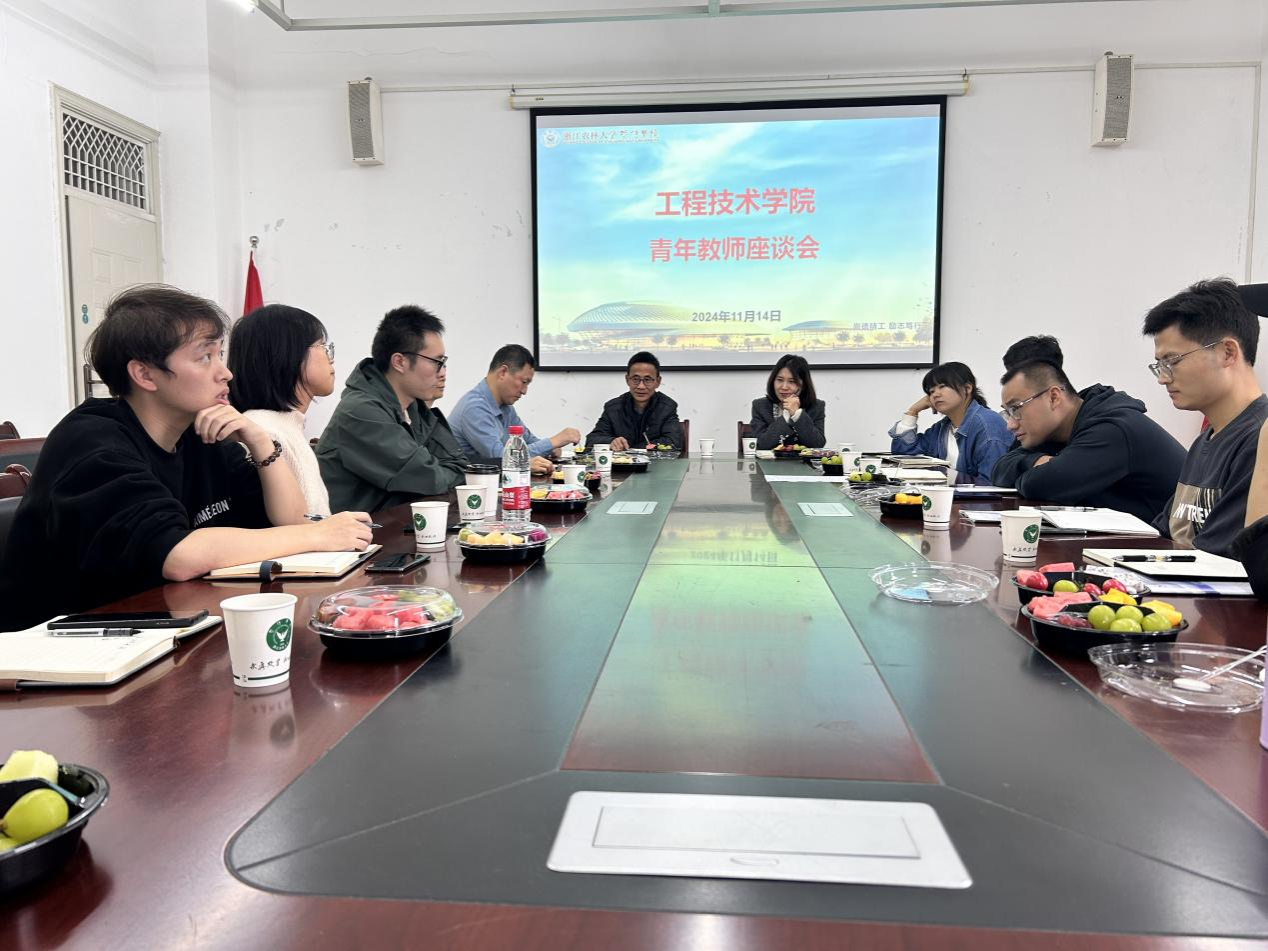 为更好服务青年教师,全面提升青年教师的综合素养,促进青年教师专业成长,深入推进学院师资队伍建设,11月14日,工程技术学院在理工3402会议室召开了青年教师座谈会。工程技术学院班子成员出席。2023至2024年度新入职的青年教师共聚一堂,共谋发展。座谈会由工程技术学院院长彭樟林主持。