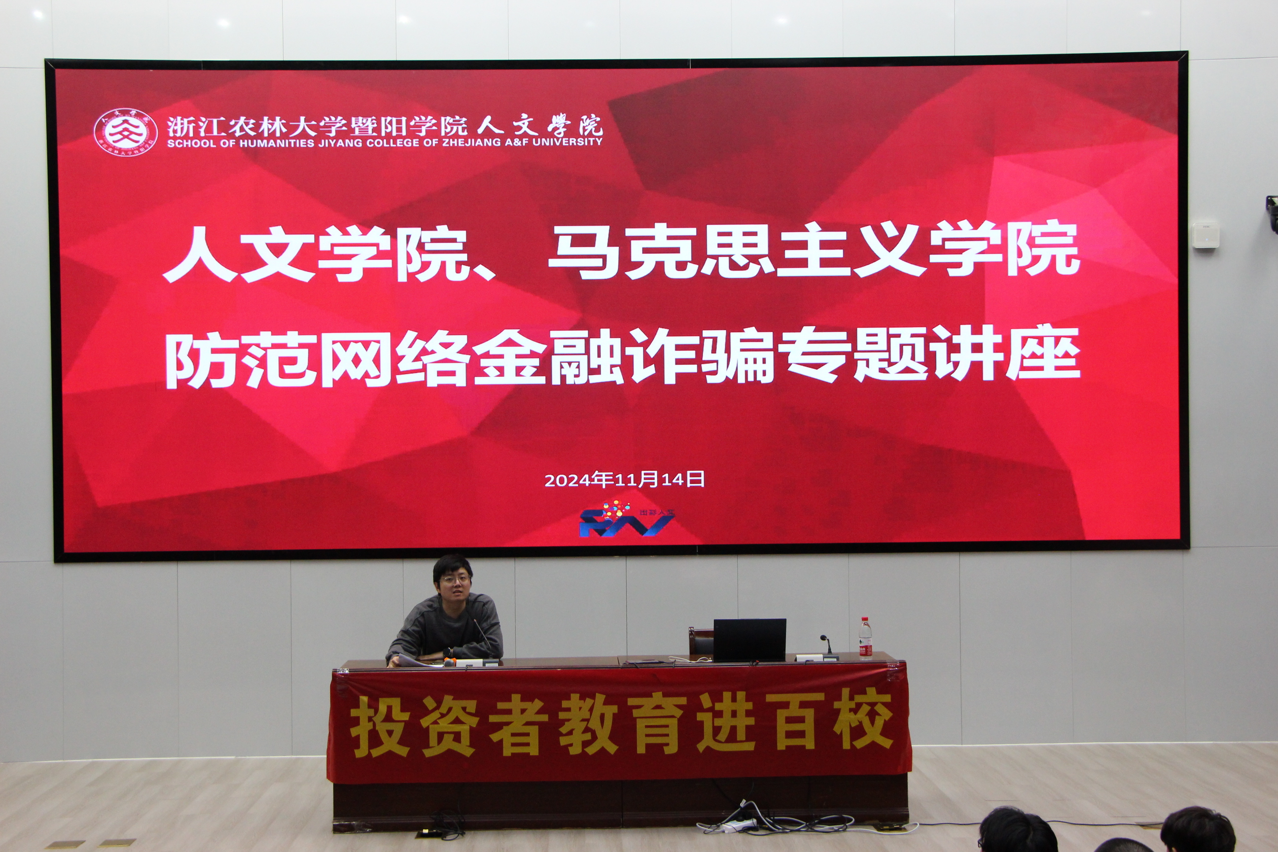 为提高学院师生的防诈骗意识,预防网络诈骗,营造安全和谐的校园环境,共创安全校园。11月14日,人文学院、马克思主义学院在图书馆报告厅开展防范网络金融诈骗专题讲座。人文学院、马克思主义学院班子成员、全体教师和学生代表参加本次讲座。讲座邀请了浙商证券陈拔群顾问为主讲人。