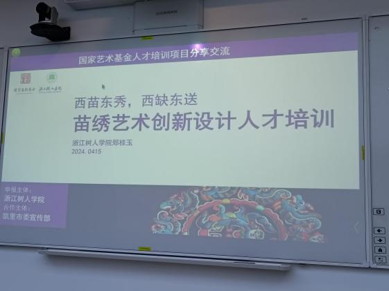 次日,浙江树人学院教授郑国玉、胡娇娇博士2位专家就国家艺术基金人才培训项目《“西苗东秀、西缺东送”苗绣艺术创新设计人才培训》及《艺术与科技专业申报与建设》进行了经验分享,与会者深受鼓舞。随后,与会人员就如何申报国家艺术基金项目及艺术与科技新专业建设与发展进行了深入交流与探讨。