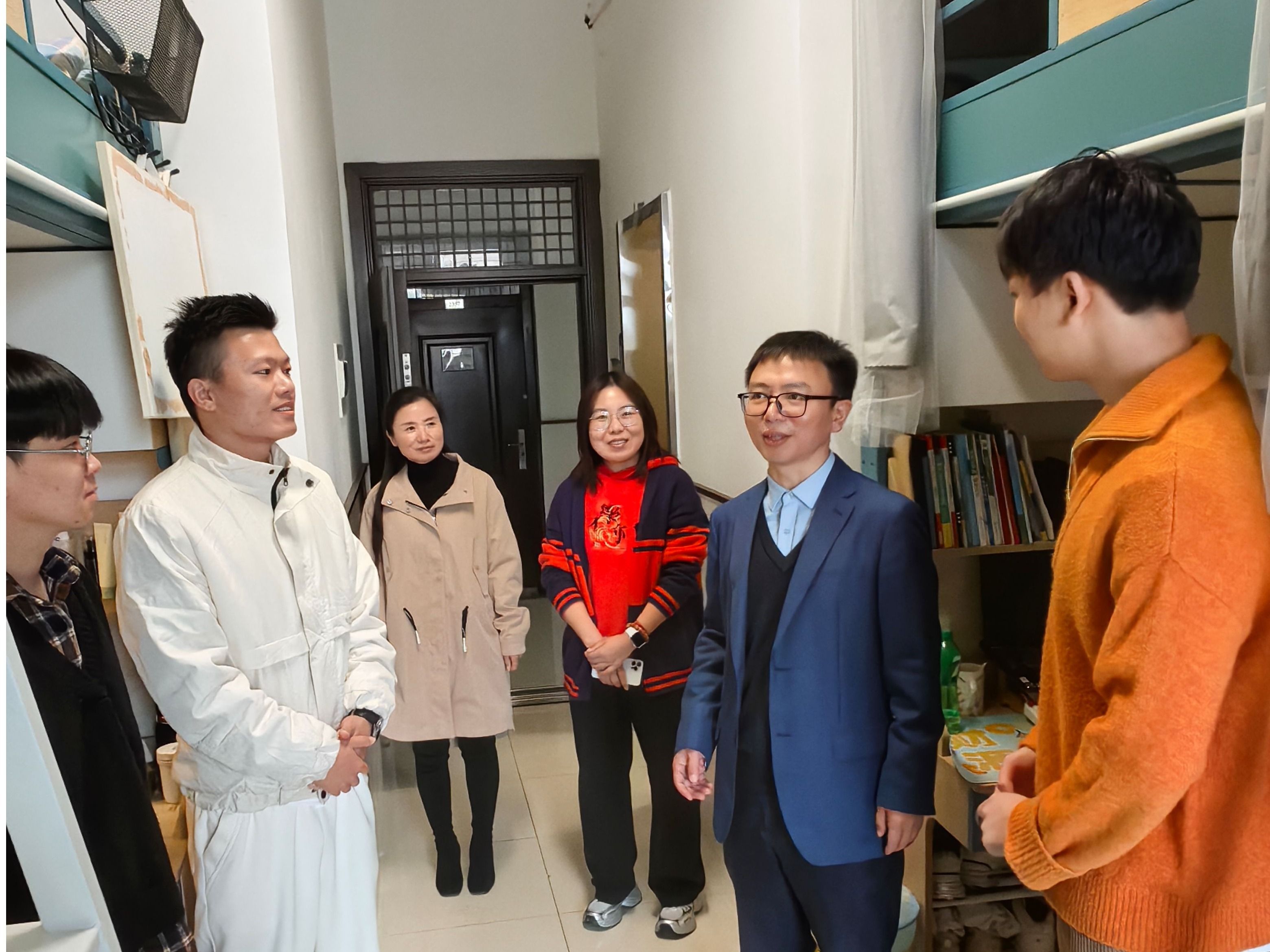 教师们在学生宿舍与同学们亲切交流,倾听学生们在学习和生活中遇到的困难,深入了解学生学习和生活状态。期间,教师们温馨提醒同学们,期末将至,要将精力和时间更多地投入到学习中,要提早做好期末迎考计划,合理安排复习时间,争取取得好的成绩。此外,教师们还对宿舍内违章电器、私拉线路、通道拥堵等安全隐患进行检查和提醒,并对同学们进行了相关提醒,一旦发现隐患,立即整改。同时要警惕各类诈骗,提高消防、交通、食品等各类安全意识,保护好人身和财产安全,共同营造安全、和谐、整洁的学习和生活环境。