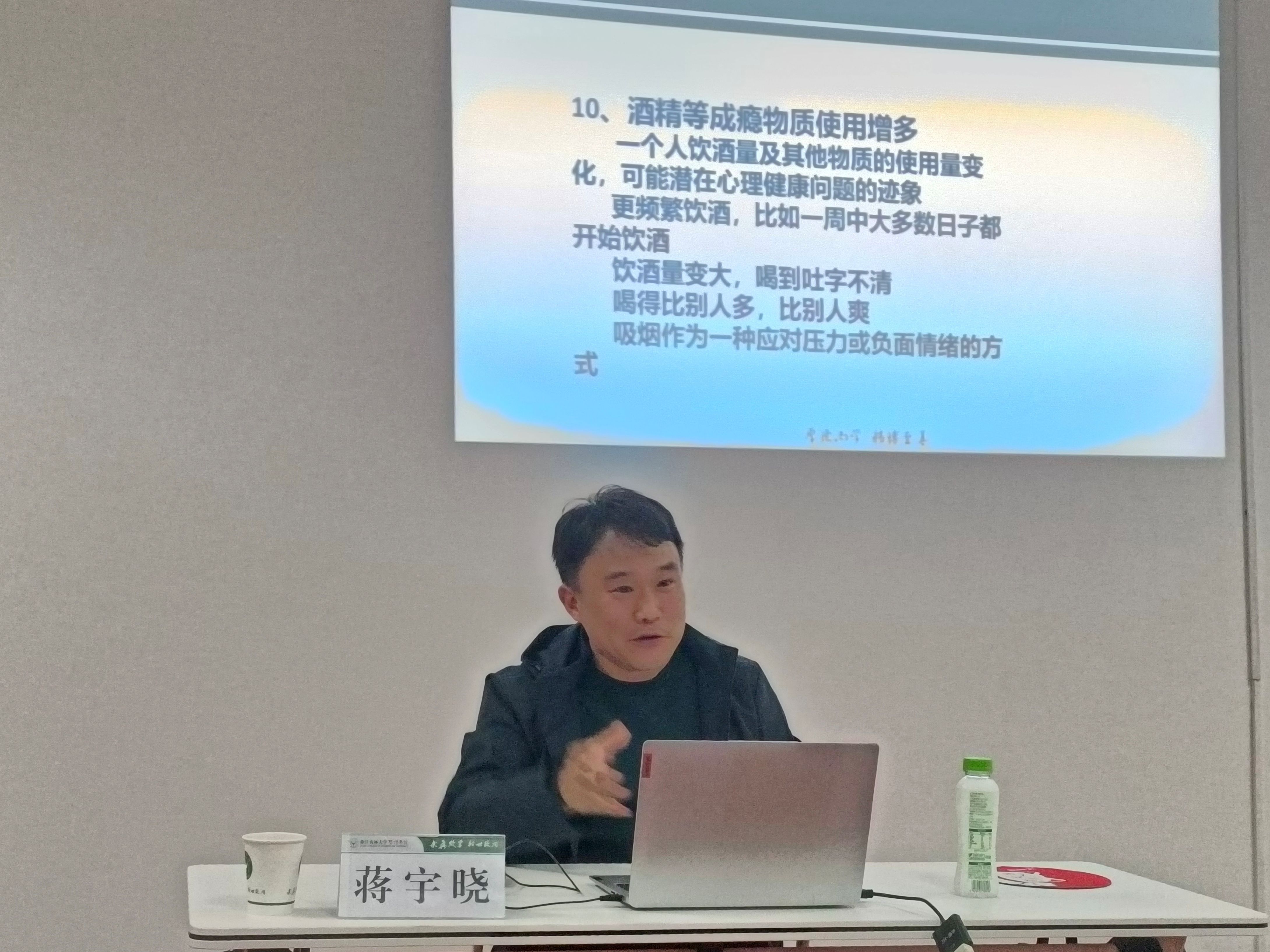 本次思享会邀请诸暨市第五人民医院医生蒋宇晓就心理健康知识作主题分享。蒋宇晓围绕大学生心理健康现状,介绍了常见心理健康问题及识别方法,就心理健康问题的早期成因进行了剖析,分享了有效应对早期心理健康问题的经验。