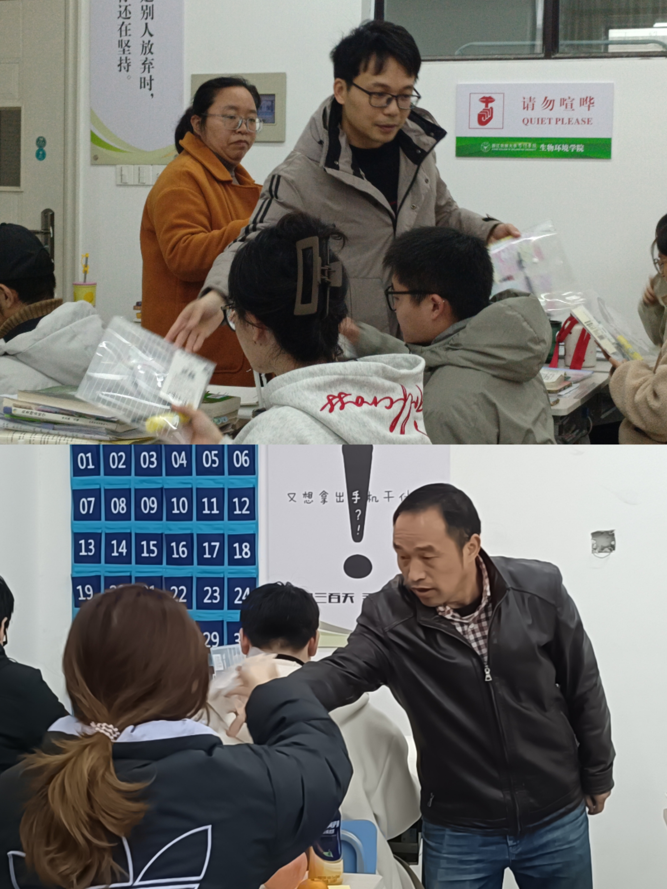 活动最后,严国兵、徐春霞以及毕业班辅导员为学生们送上生物环境学院准备的考研暖心礼包。