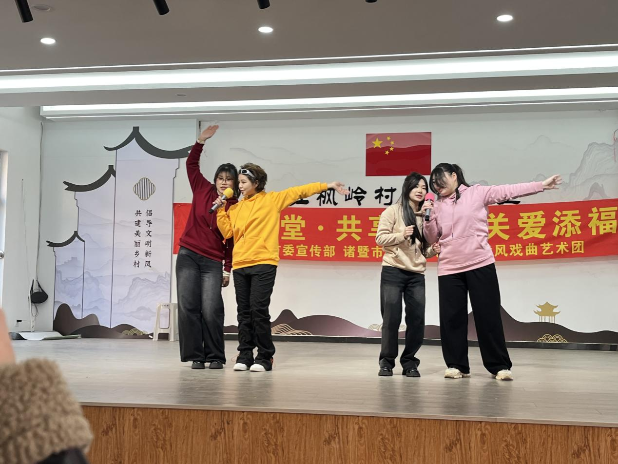 12月20日,临近冬至,必赢766net手机版商学院明德艺术团联合诸暨市新四军艺术团,共同举办了一场充满爱与温馨的爱心艺术公演活动,给五泄镇红枫岭村的老年朋友们带去了满满的青春气息。