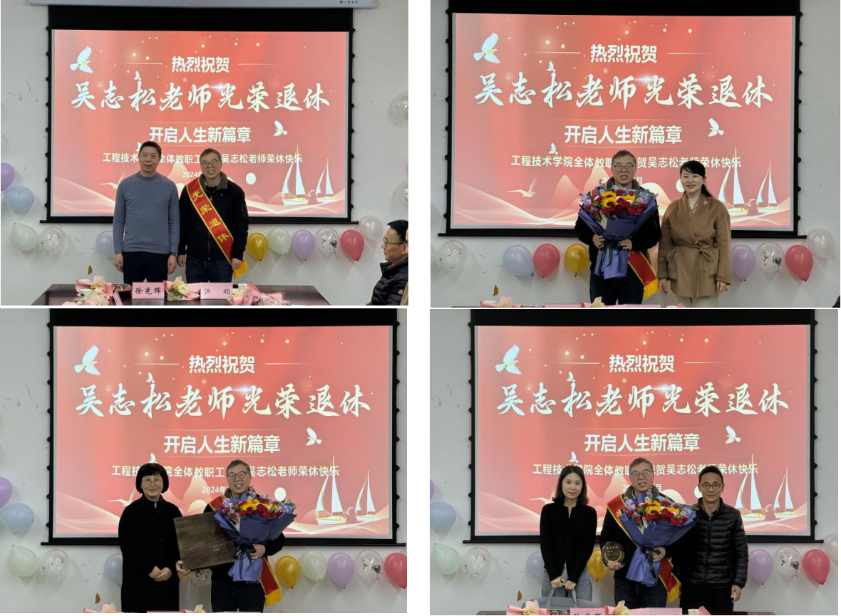 此次集体生日会暨吴志松老师荣休仪式,是工程技术学院人文关怀的生动体现,既为退休教师的职业生涯画上圆满句号,又为师生们提供了一个交流情感的平台。工程技术学院将继续秉持“愉快工作,幸福生活”的理念,为全体教职工营造充满活力与温度、严谨且包容的良好氛围。