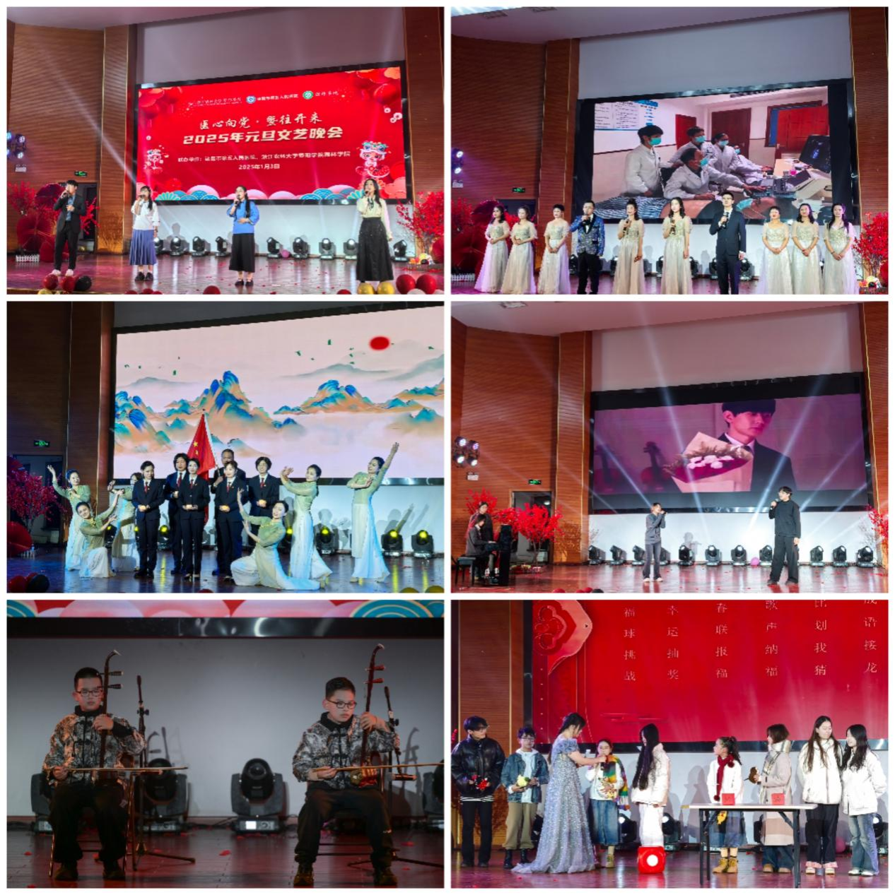 为进一步发挥党建引领作用,展现青年学子健康向上的精神风貌。1月3日晚,园林学院与诸暨市第五人民医院于明珠报告厅共同举办“医心向党·暨往开来”文艺晚会。诸暨市浣东街道、诸暨市卫生健康局领导、嘉宾,学院各职能部门和二级学院负责人,市五院全体领导干部和职工,学院师生代表,400余人参加活动。