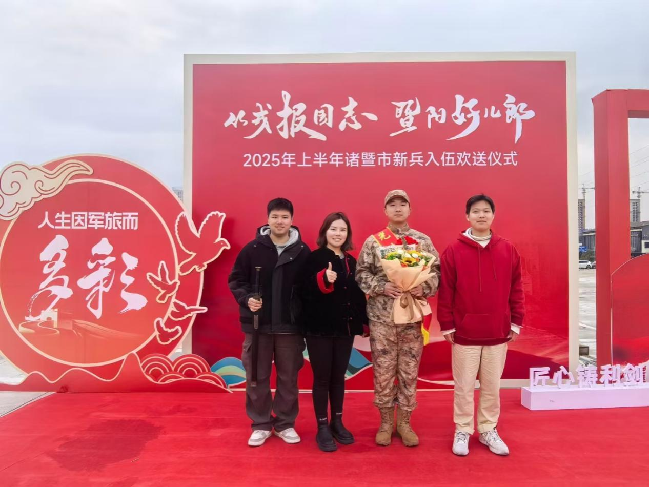 3月16日,必赢766net手机版新兵参加了诸暨市举行的2025年上半年新兵入伍欢送仪式。新兵战士肩披红绶带,胸戴大红花,昂首挺胸,英姿勃发,从诸暨市领导手中接过“从戎之剑”,高喊誓言:“从戎之剑出鞘!听党指挥,能打胜仗,作风优良!”这也意味着他们将告别大学校园,迎来崭新的军旅生涯。