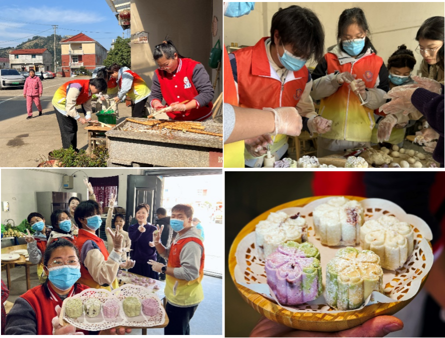 在上英村爱心食堂,来自生环团学的志愿者们也一刻不停,通过制作爱心糕点的方式,为视障人士与孤寡老人献上爱心。从材料准备到糕点制作,志愿者们全神贯注,随着时间推移,一朵朵“鲜花”在志愿者们指尖绽放,志愿者们用自己的行动诠释了“奉献、友爱、互助、进步”的志愿精神。
