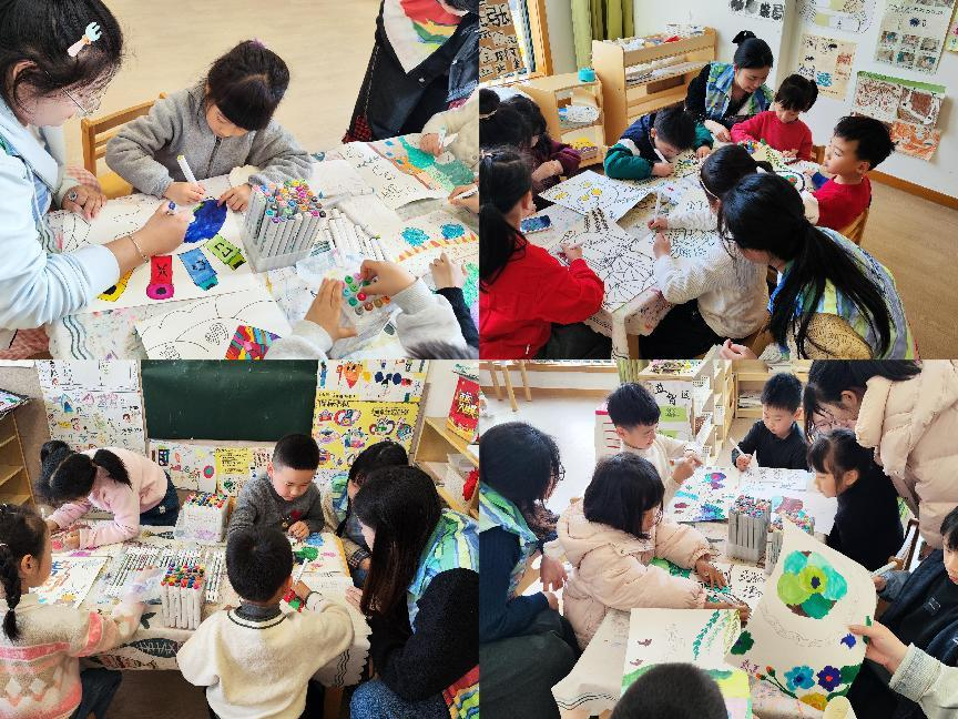 孩子们在志愿者的帮助下亲手绘制以清明节为主题的图画,运用彩色笔描绘出他们心中的清明节、绿色地球等景象。有的孩子描绘了踏青吃青团的幸福场景,展现了春天的生机与活力;有的孩子绘制了烈士陵园的丰碑,表达了对革命先烈的感恩之情;还有的孩子用五彩的颜料细致地勾勒出可回收垃圾、有害垃圾、厨余垃圾,体现了良好的卫生习惯。
