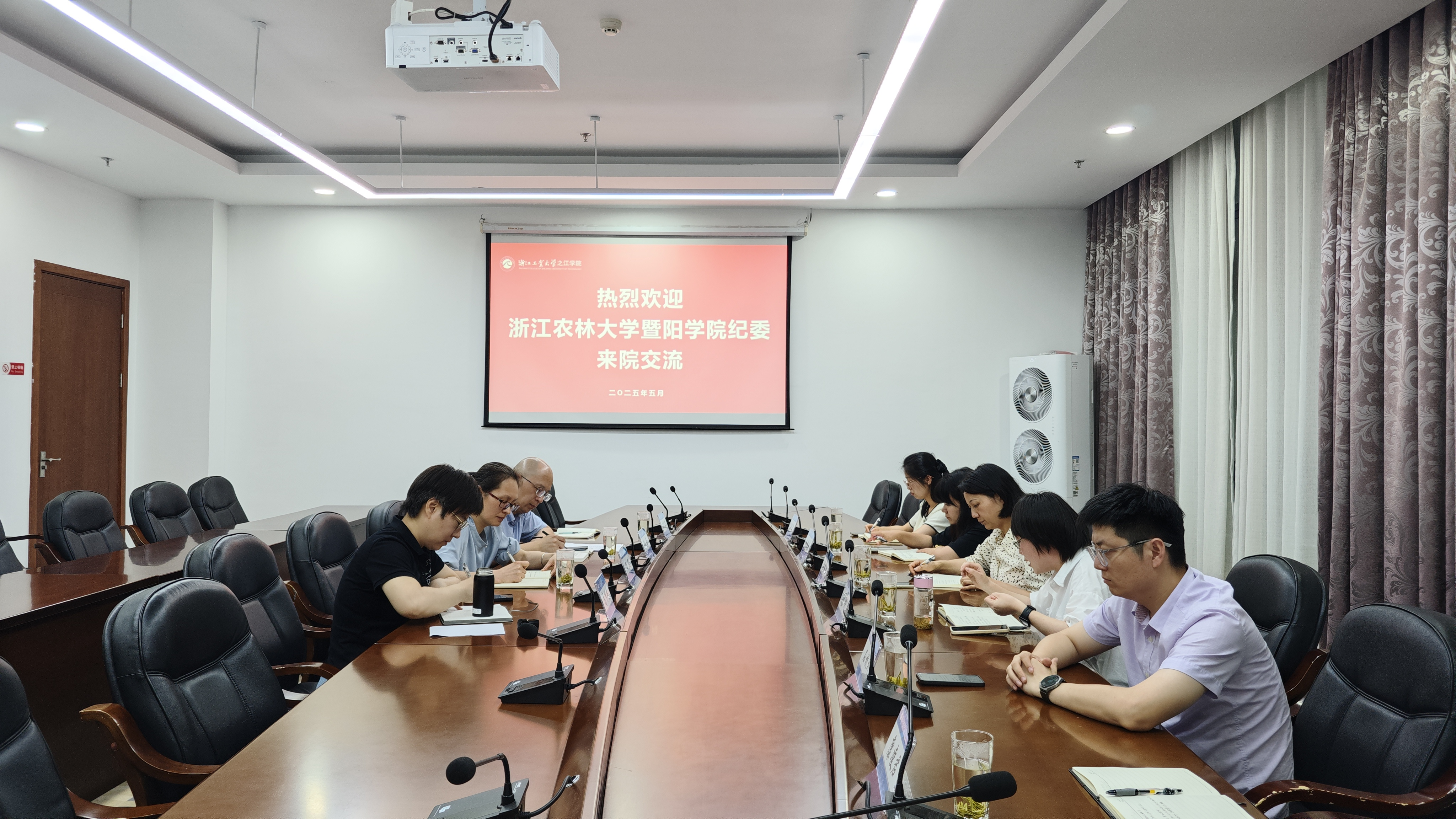 浙江工业大学之江学院纪委书记杨燕,纪检办公室(审计办公室)全体成员热情接待并参加座谈会,双方就新时代高校廉洁文化建设、监督推动落实“四责”协同机制、健全监督体系,发挥基层二级纪检委员“前哨”作用、纪检工作规范化法治化正规化建设、审计工作开展与转化应用等方面的经验做法进行深入交流与探讨。