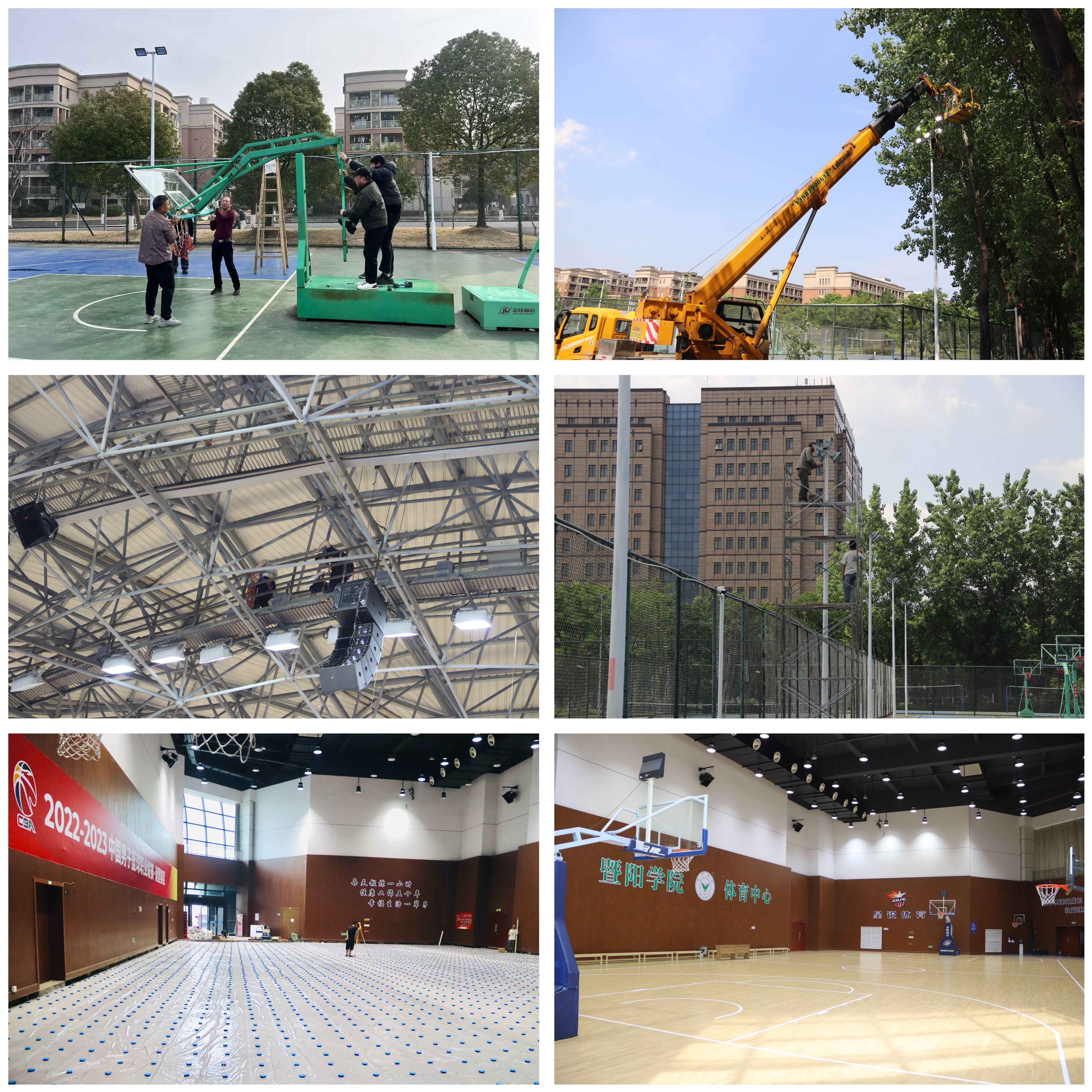 此次升级维护秉持“以师生为本”的服务理念,重点对篮球馆、羽毛球馆、室外运动场三大区域实施设施升级:针对室外运动场部分篮球架损坏问题,采购更新了符合国家标准的品牌篮球架,保障体育教学训练需求;针对田径场地东南角夜间照明不足问题,采购加装12米LED高杆灯,同步检修室外运动场既有照明设施,进一步提升师生夜间运动安全系数;针对篮球主馆照明设施陈旧老化问题,采购了部分专业赛事级照明,为承办大型赛事活动提供硬件保障;针对篮球副馆使用频次高木地板损坏严重师生教学运动体验差的问题,重新采购铺设了双层减震运动地板,有效优化运动防护性能;同时对羽毛球馆部分区域实施照明升级,更好地满足体育教学及师生健身锻炼需求。