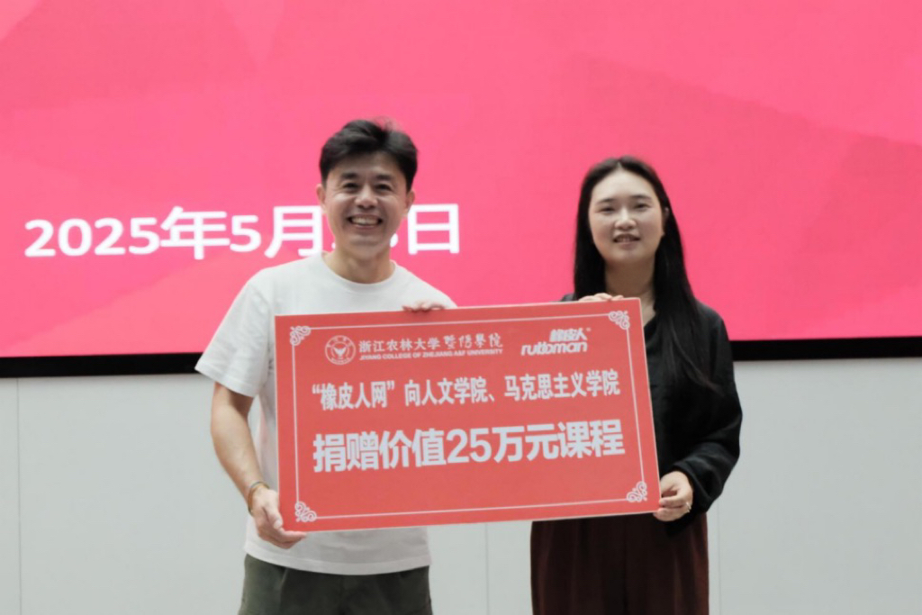 仪式上,尚锋首先对“橡皮人网”大师课程做简单介绍,并向人文学院、马克思主义学院捐赠价值25万元的课程资源,广告学专业负责人作为代表接受捐赠。
