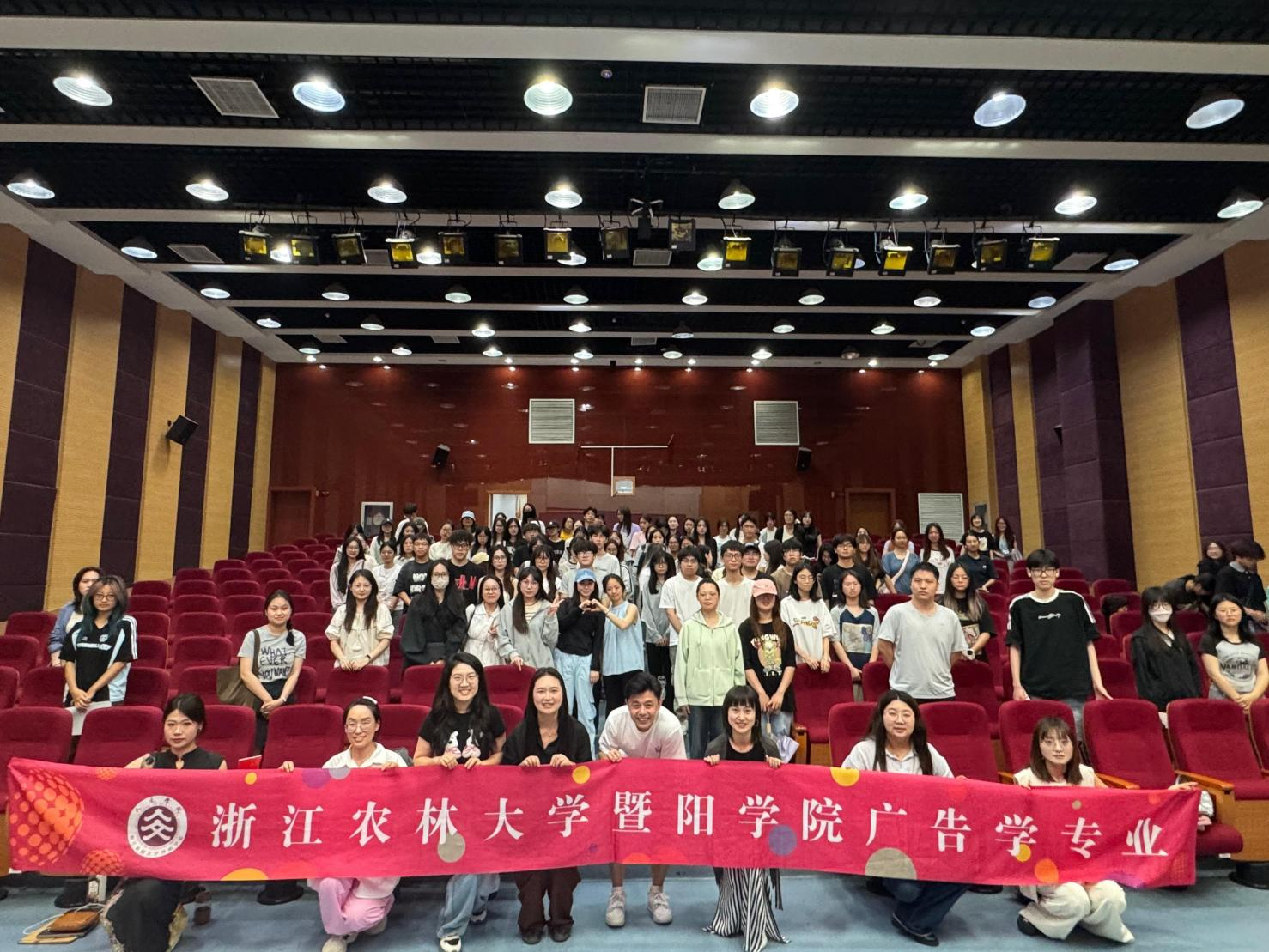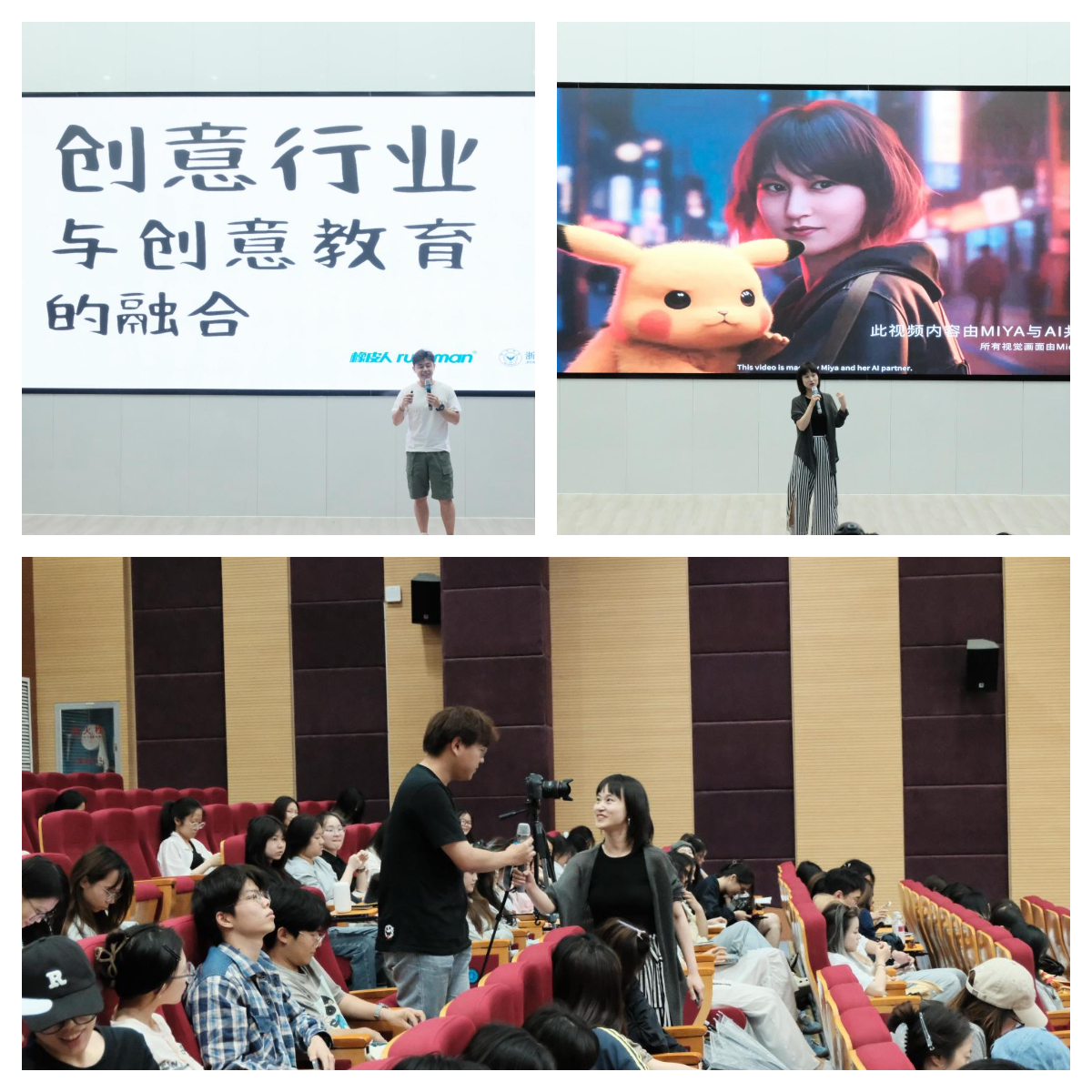 王雅敏做题为《要么有意思,要么有意义》的主题分享,作为土卜皿创意工作室创始人,业界曾经最年轻的90后创意总监,独立创意人/编剧/导演/文案,王雅敏结合自身丰富的从业经历,通过展示大量个人广告作品,向同学们讲述创作背后的故事,分享创作思路与思考,帮助同学们明晰从事广告行业的初心,激发创作激情,用创意让“有意思”保持“有意义”,“有意义”变得“有意思”。随后,现场师生与嘉宾老师展开了热烈交流,思想碰撞频繁,氛围高涨。